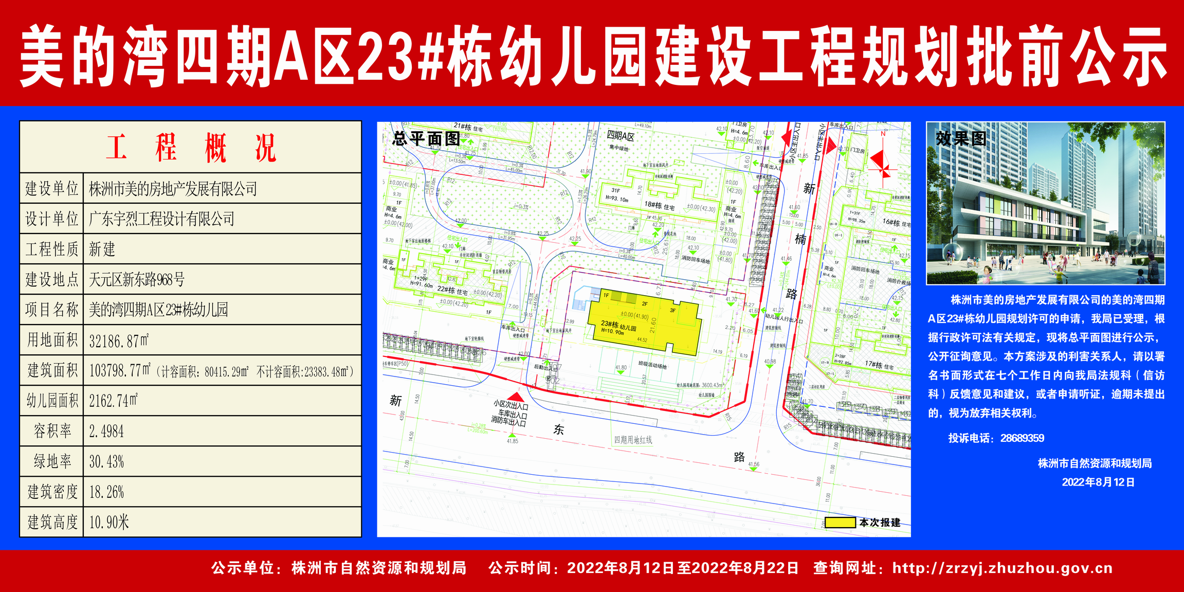 株洲市美的房地产发展有限公司(美的湾四期A区23#栋幼儿园建设工程规划批前公示)2