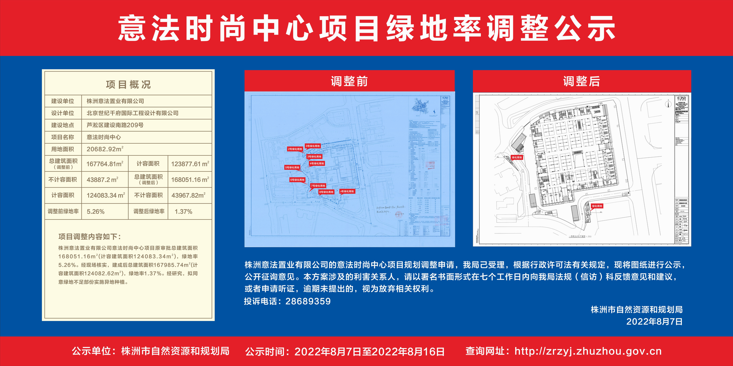 株洲意法置业有限公司意法时尚中心绿地率调整公示