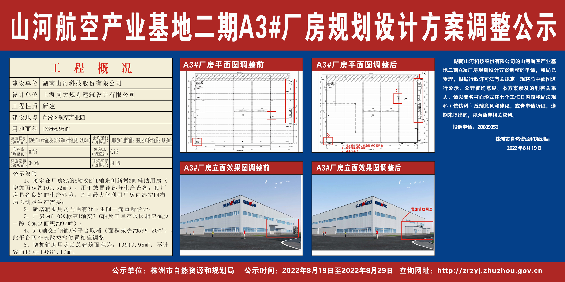 湖南山河科技股份有限公司(山河航空产业基地二期A3#厂房规划设计方案调整公示)2