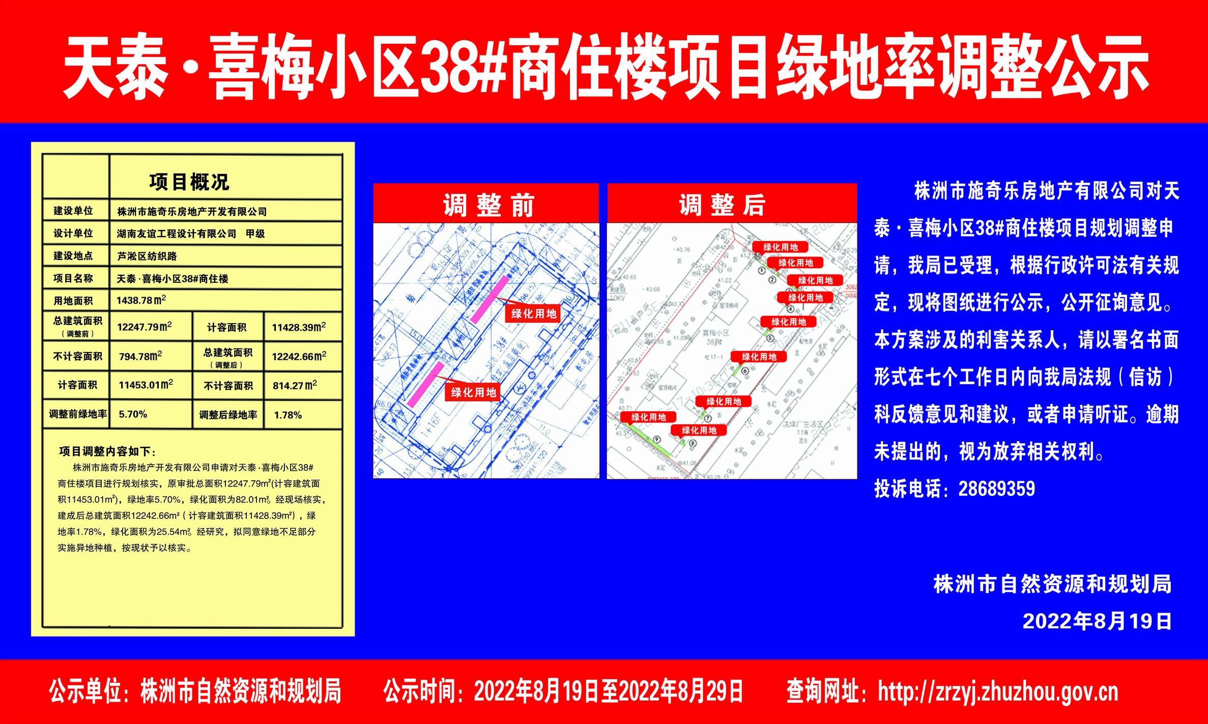 天泰喜梅小区38栋绿化调整公示2