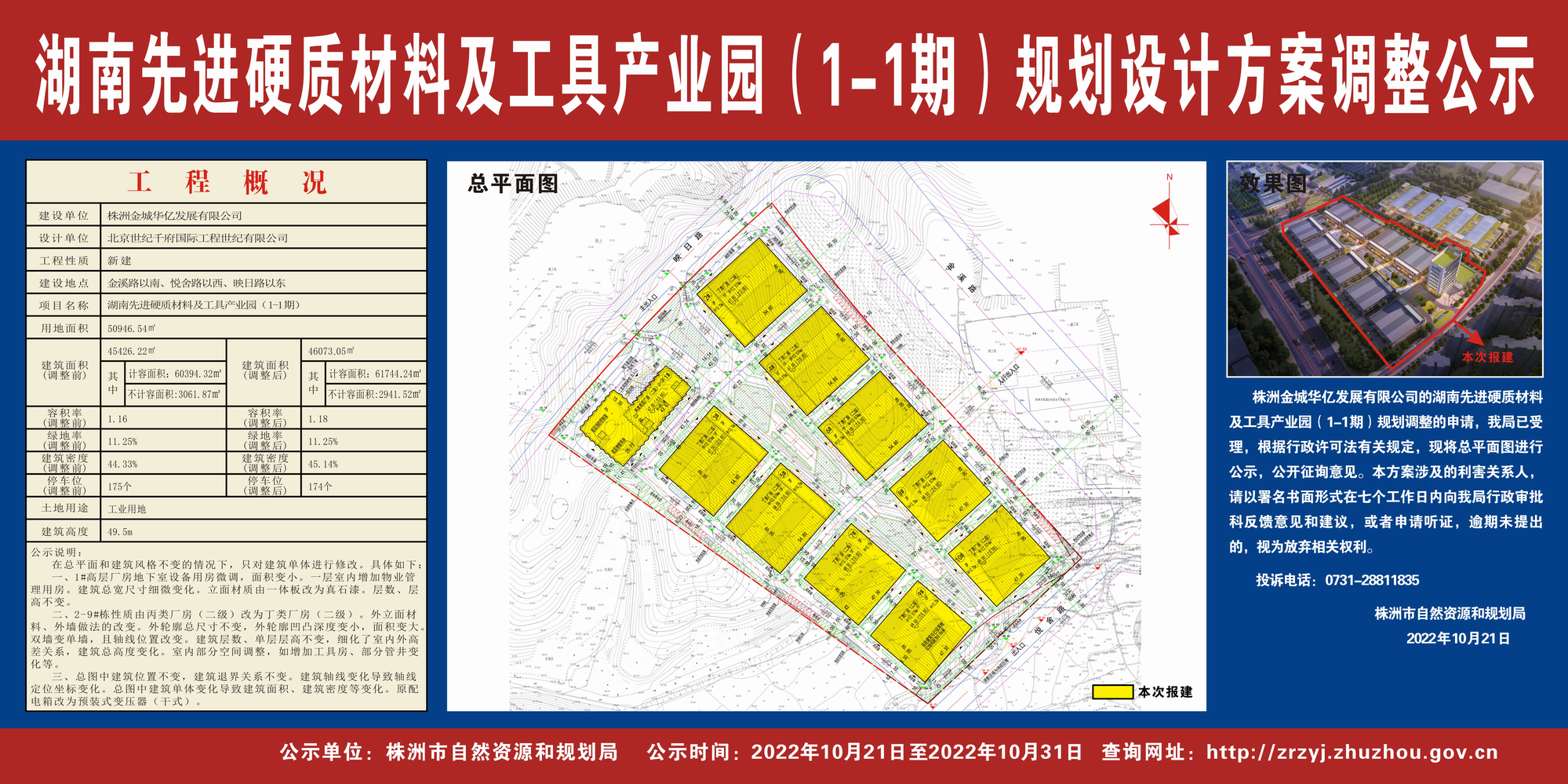株洲金城华亿发展有限公司(湖南先进硬质材料及工具产业园(1-1期)规划设计方案调整公示)1