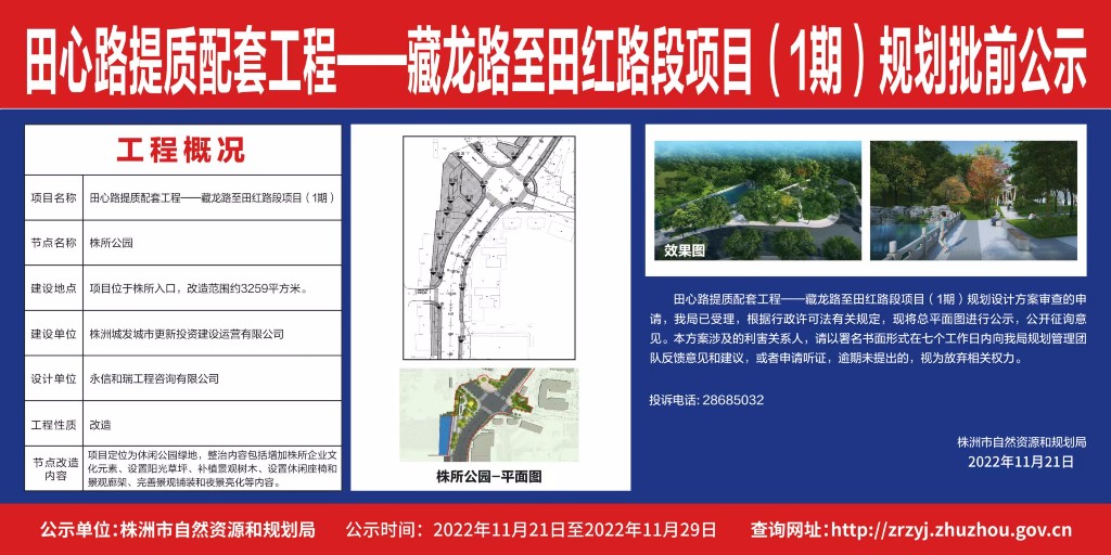 田心路提质配套工程——藏龙路至田红路段项目(1期)规划批前公示
