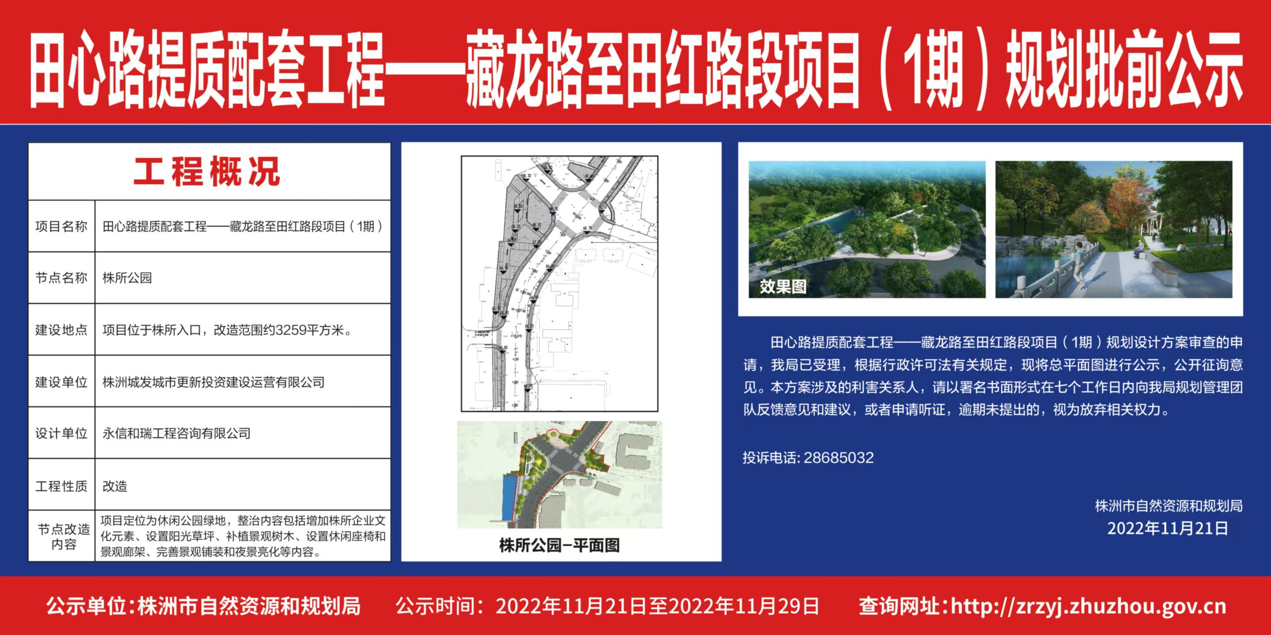 田心路提质配套工程——藏龙路至田红路段项目(1期)规划批前公示4