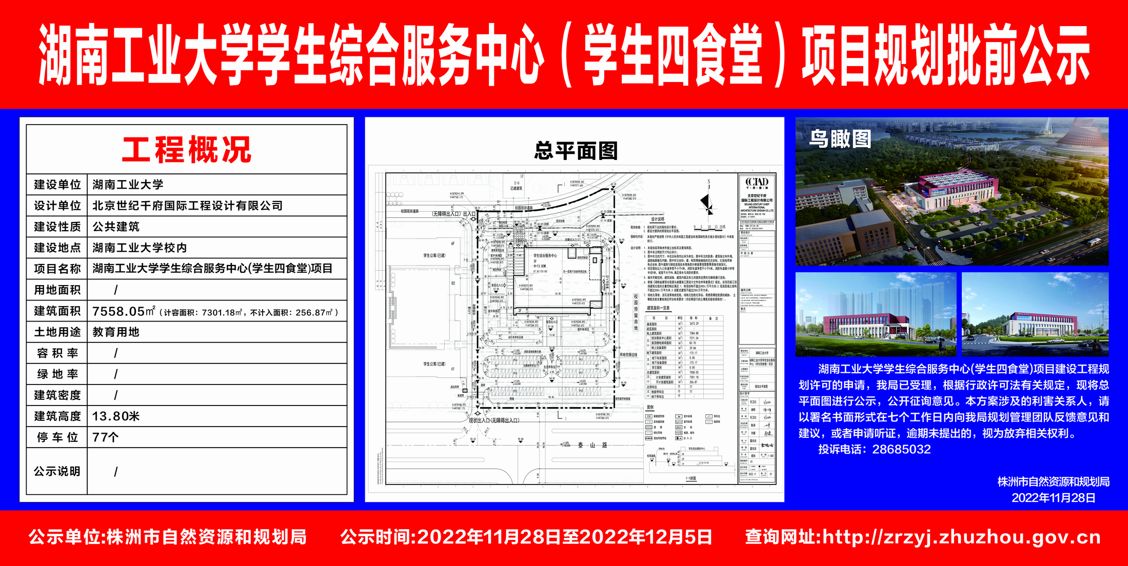 湖南工业大学学生综合服务中心(学生四食堂)项目规划批前公示
