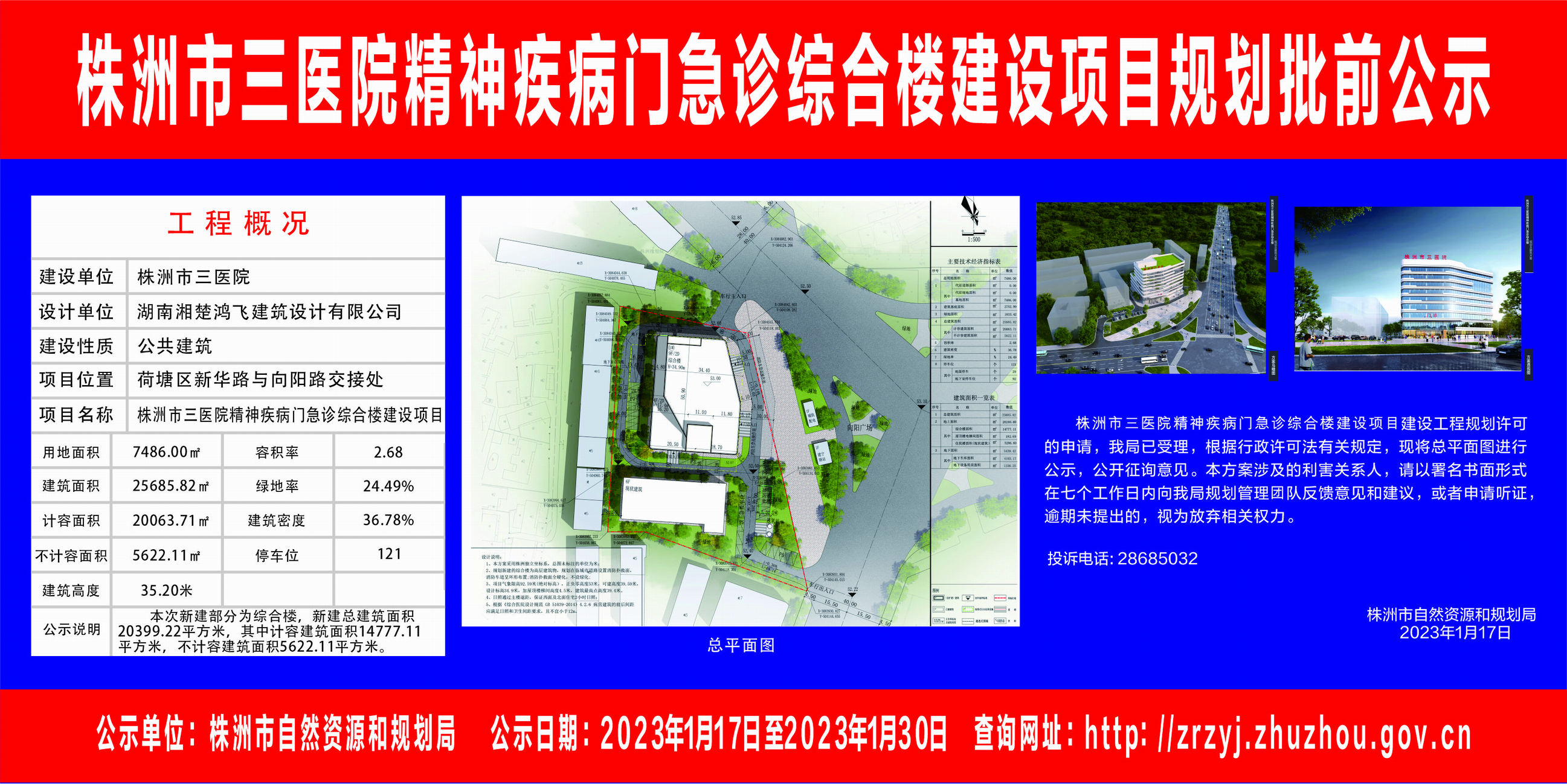 株洲市三医院精神疾病门急诊综合楼建设项目规划批前公示