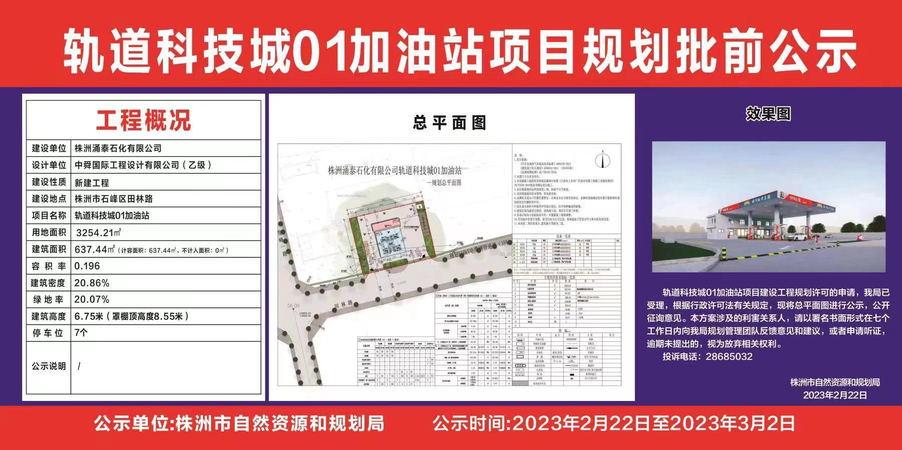 轨道科技城01加油站项目规划批前公示