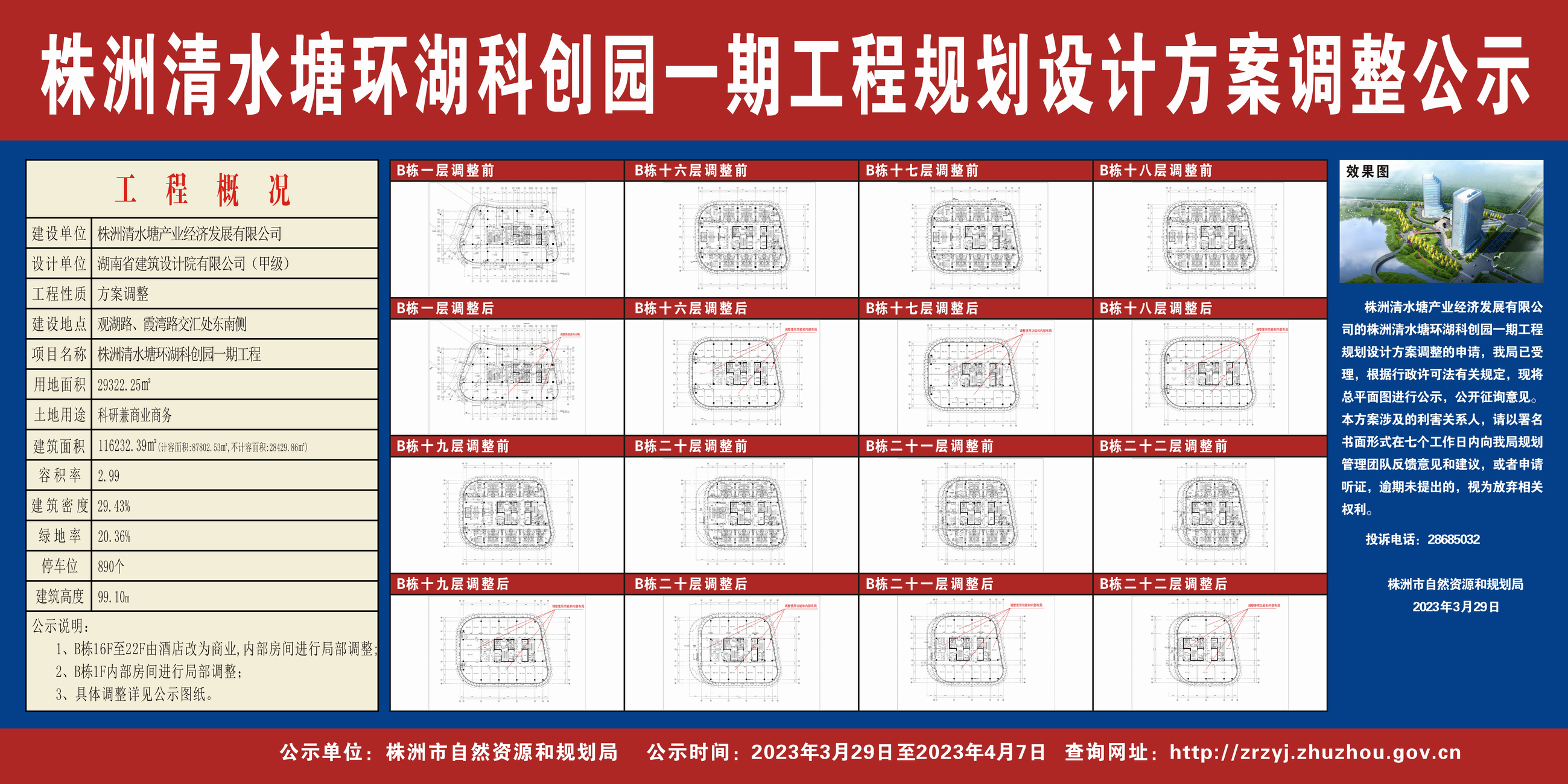 株洲清水塘环湖科创园一期工程规划设计方案调整公示
