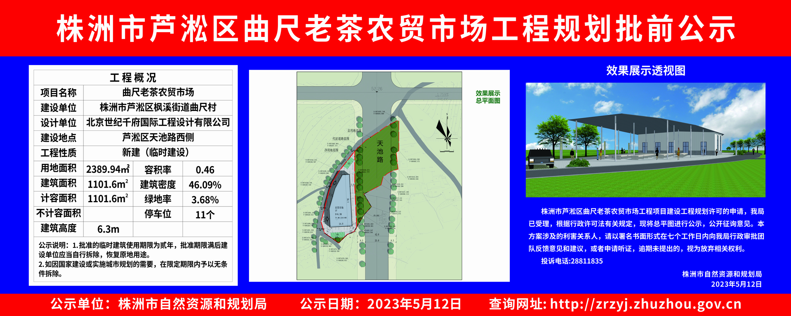 株洲市芦淞区曲尺老茶农贸市场工程规划批前公示