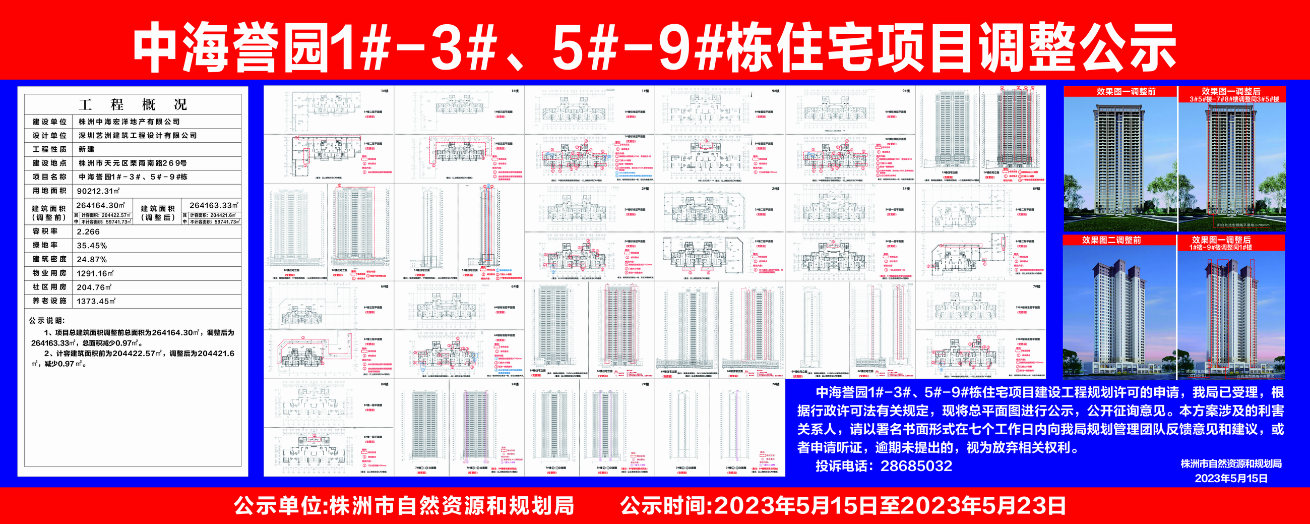 中海誉园1#-3#、5#-9#栋住宅项目调整公示
