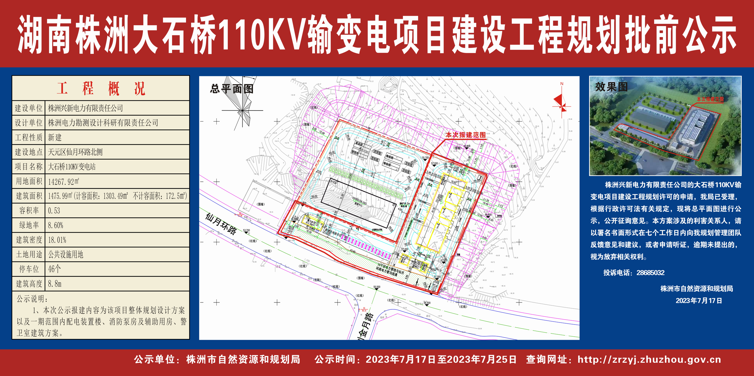 湖南株洲大石桥110KV输变电项目建设工程规划批前公示