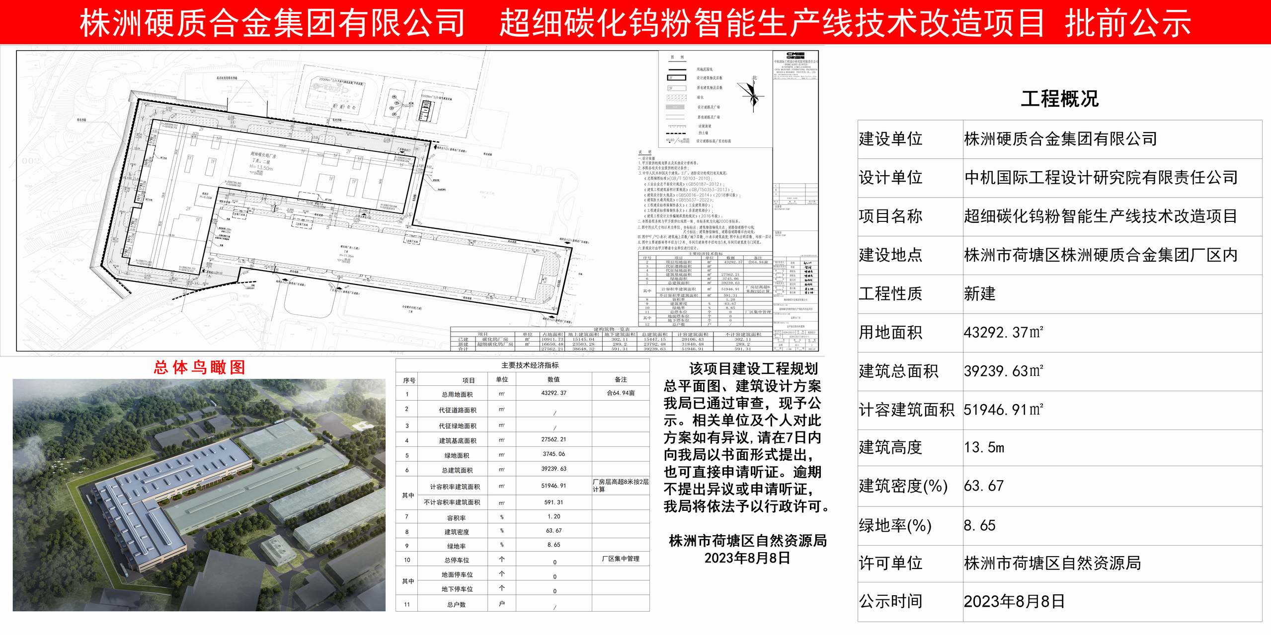 株洲硬质合金集团有限公司超细碳化钨粉智能生产线技术改造项目 批前公示
