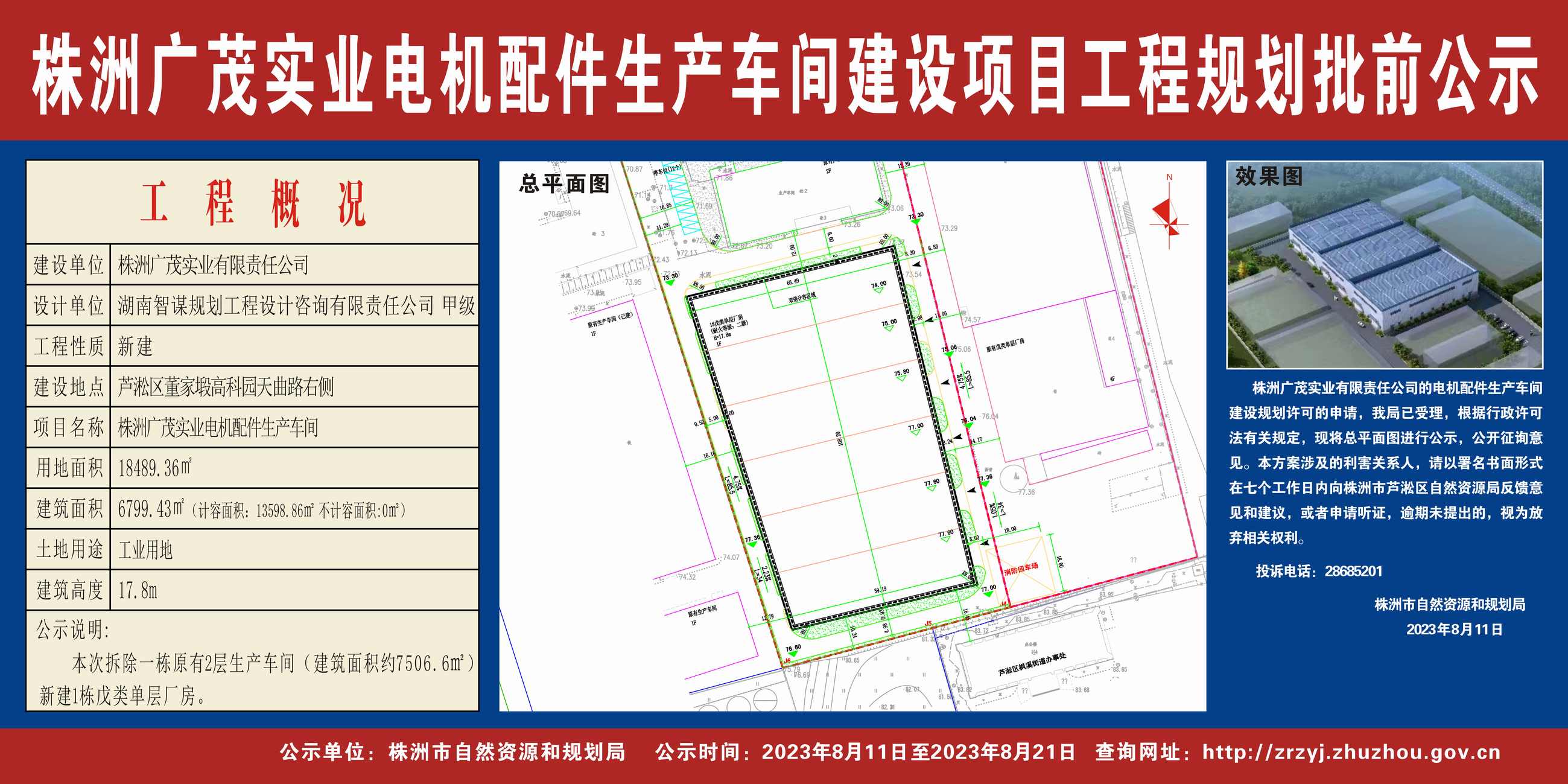 株洲广茂实业电机配件生产车间建设项目工程规划批前公示