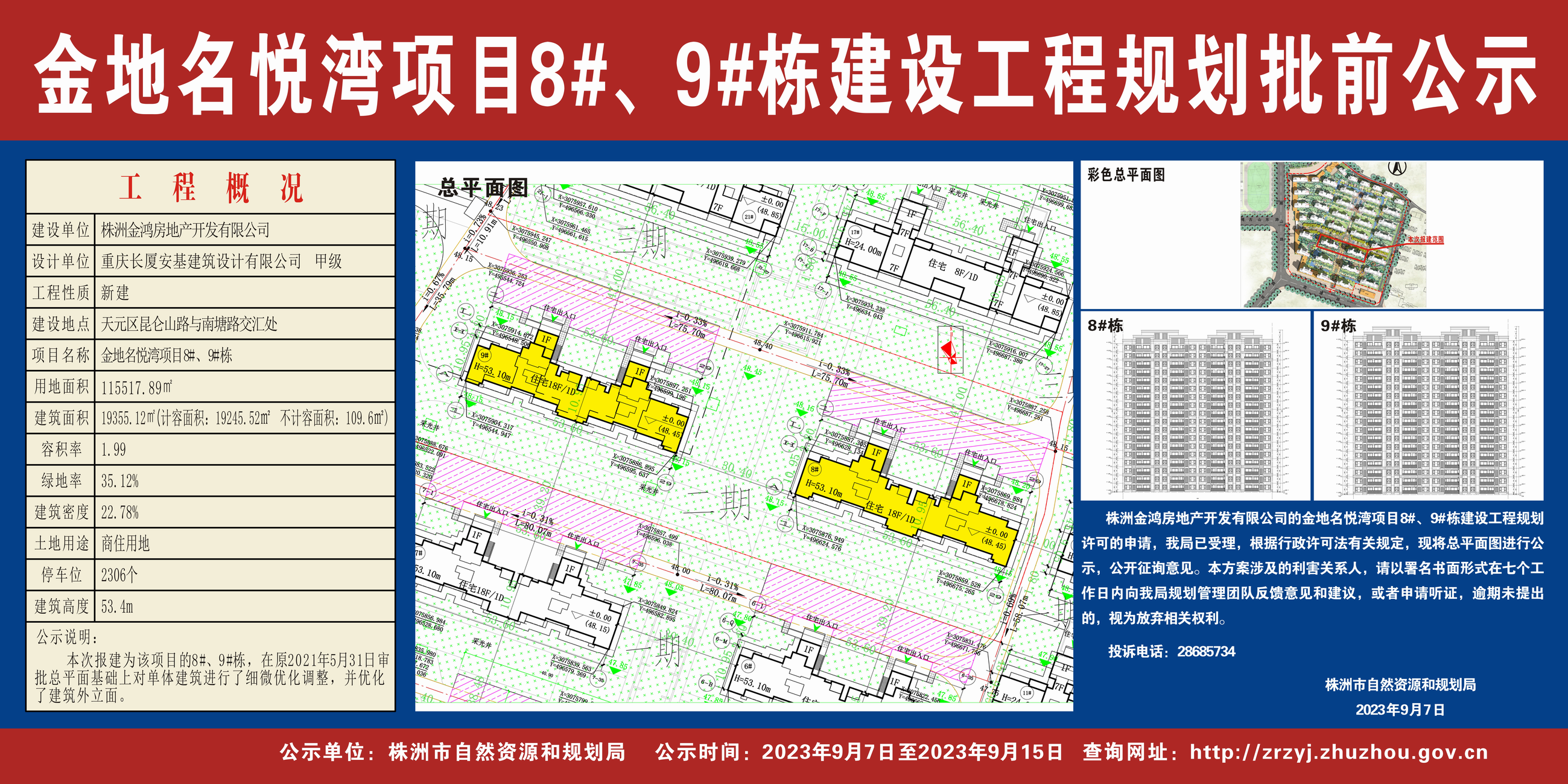 金地名悦湾项目8#、9#栋建设工程规划批前公示