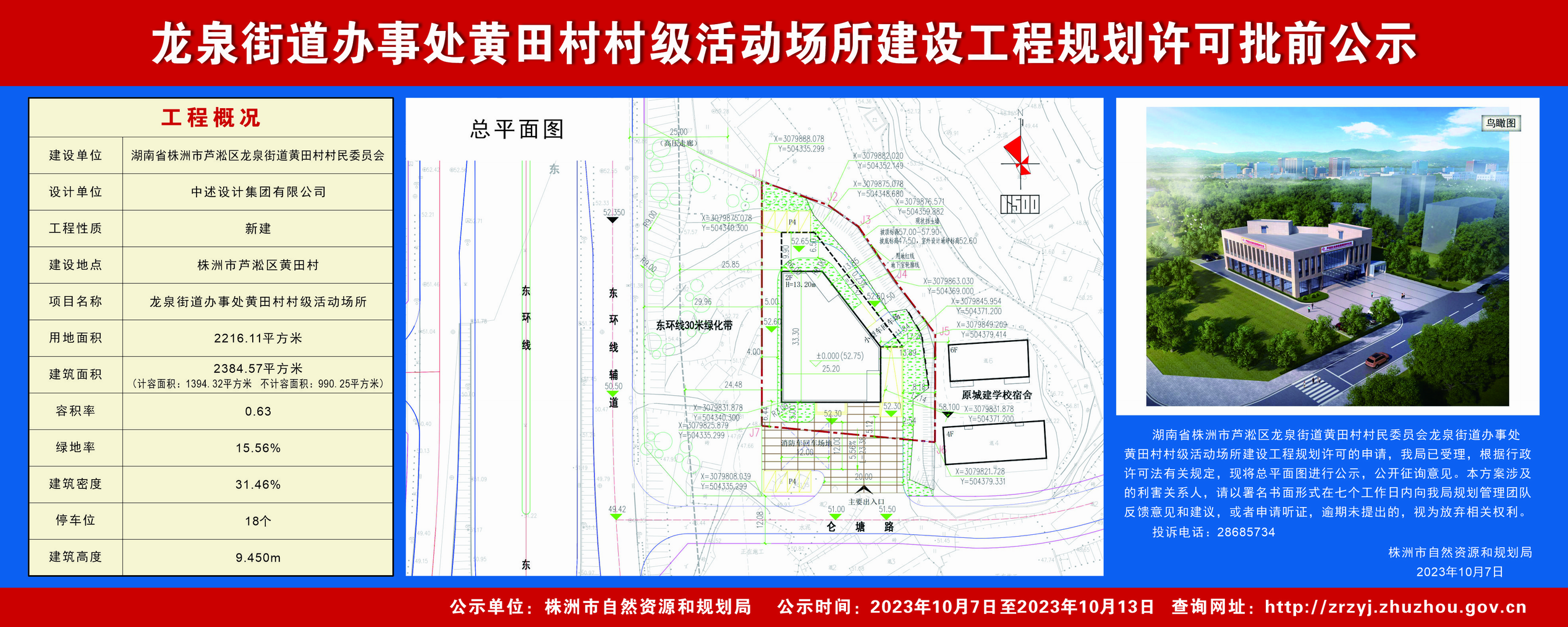 龙泉街道办事处黄田村村级活动场所建设工程规划许可批前公示