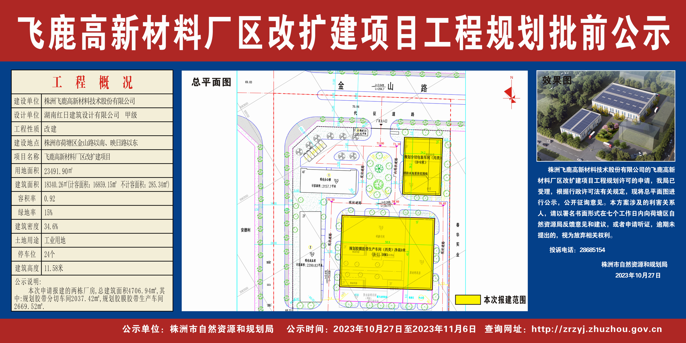 飞鹿高新材料厂区改扩建项目工程规划批前公示