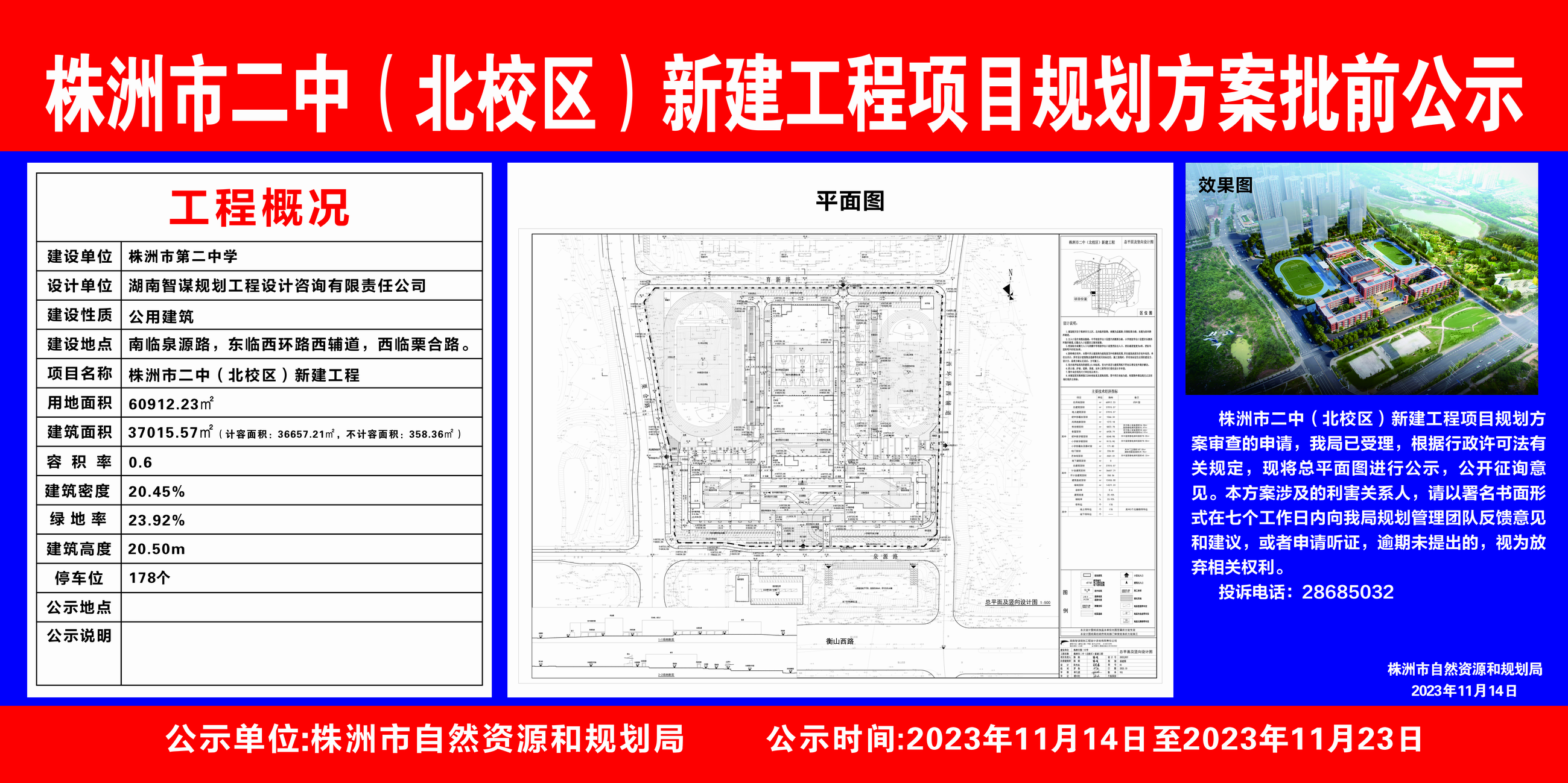 株洲市二中(北校区)新建工程项目规划方案批前公示