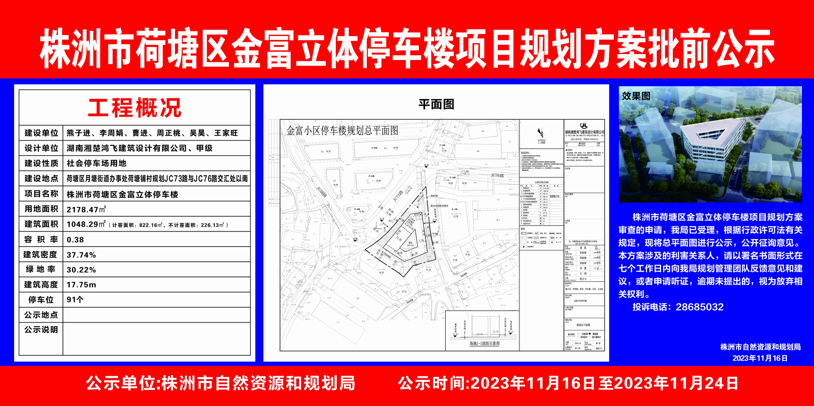 株洲市荷塘区金富立体停车楼项目规划方案批前公示