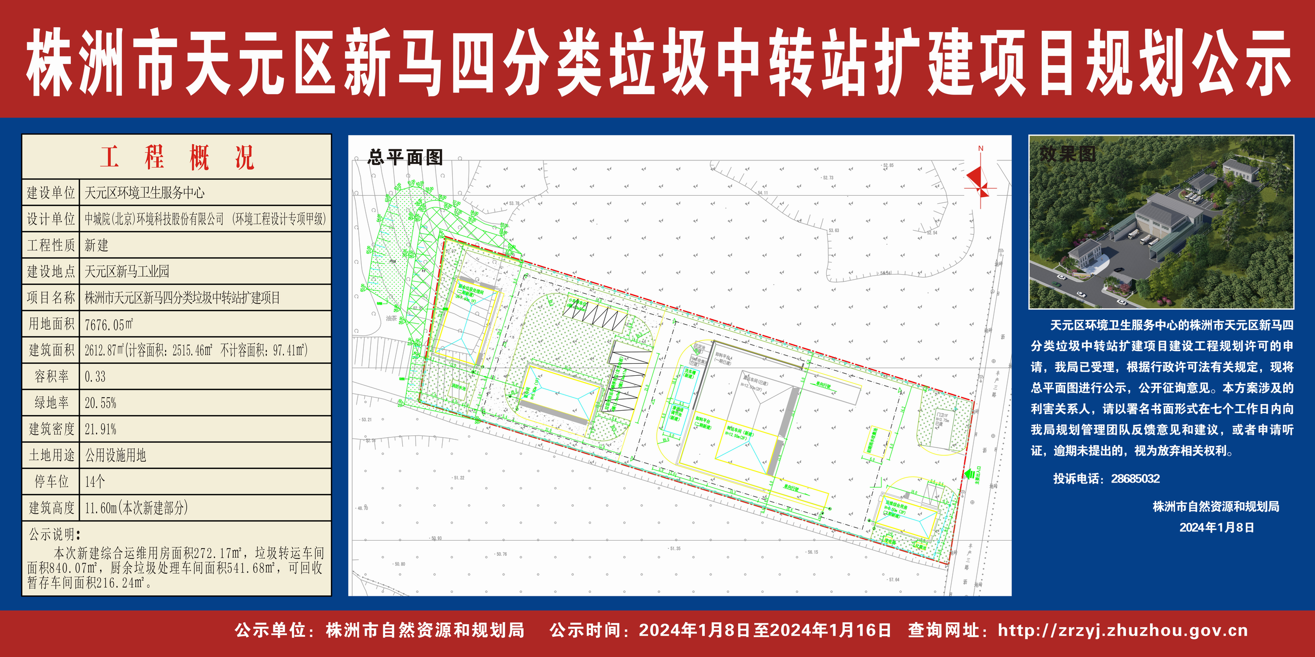 株洲市天元区新马四分类垃圾中转站扩建项目规划公示