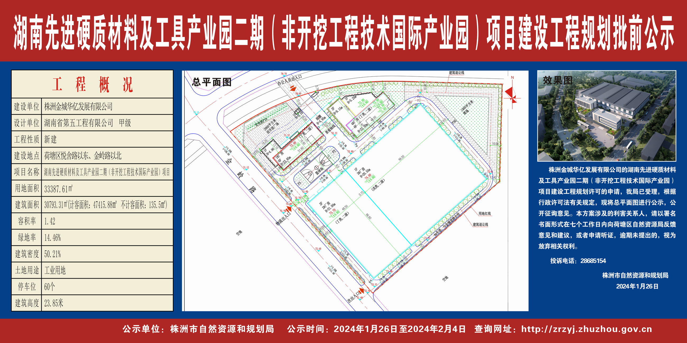湖南先进硬质材料及工具产业园二期(非开挖工程技术国际产业园) 项目建设工程规划批前公示