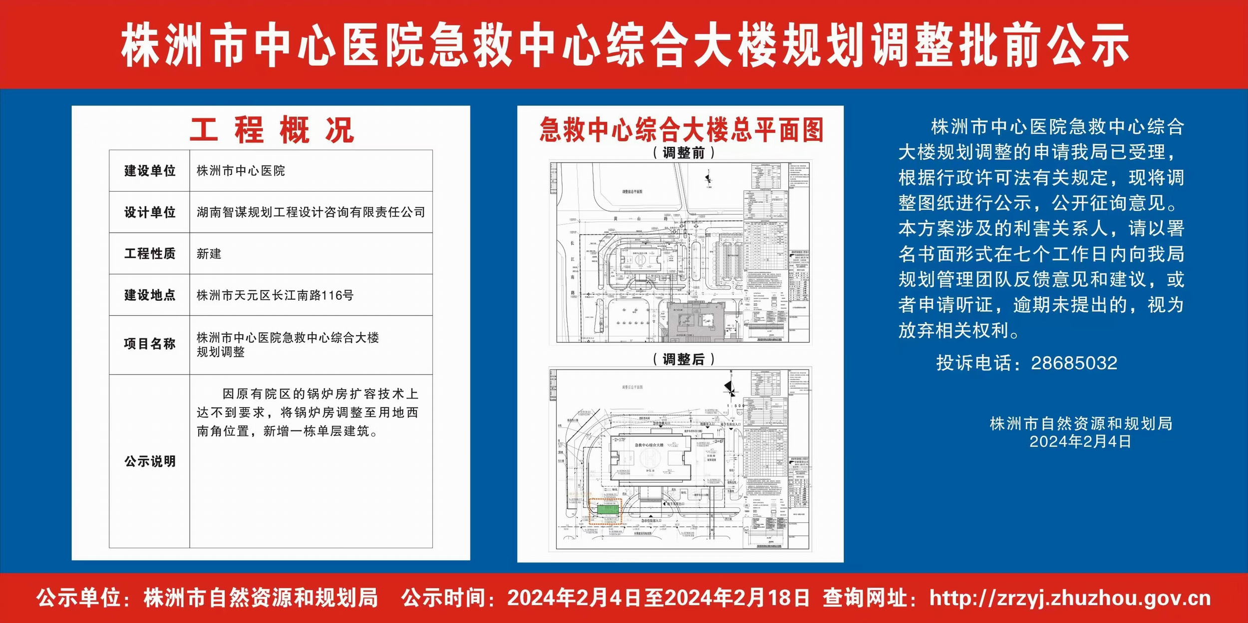 株洲市中心医院急救中心综合大楼规划调整批前公示