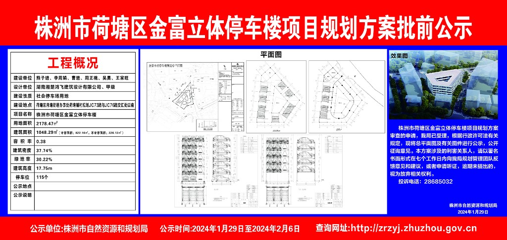 株洲市荷塘区金富立体停车楼项目规划方案批前公示