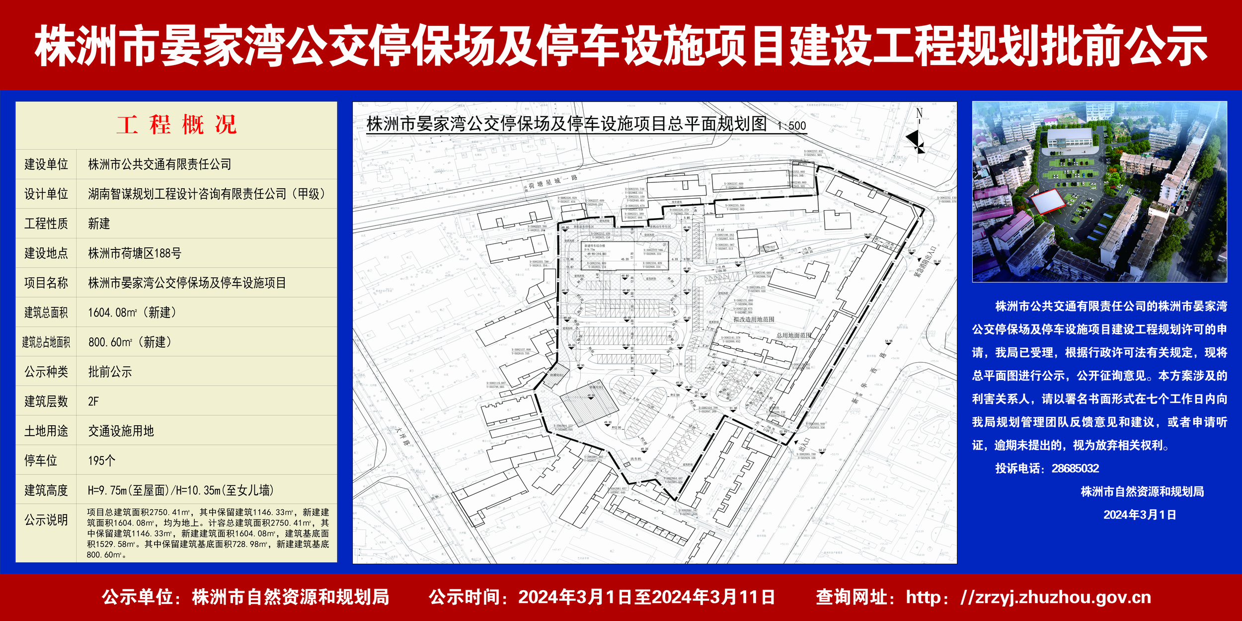 株洲市晏家湾公交停保场及停车设施项目建设工程规划批前公示
