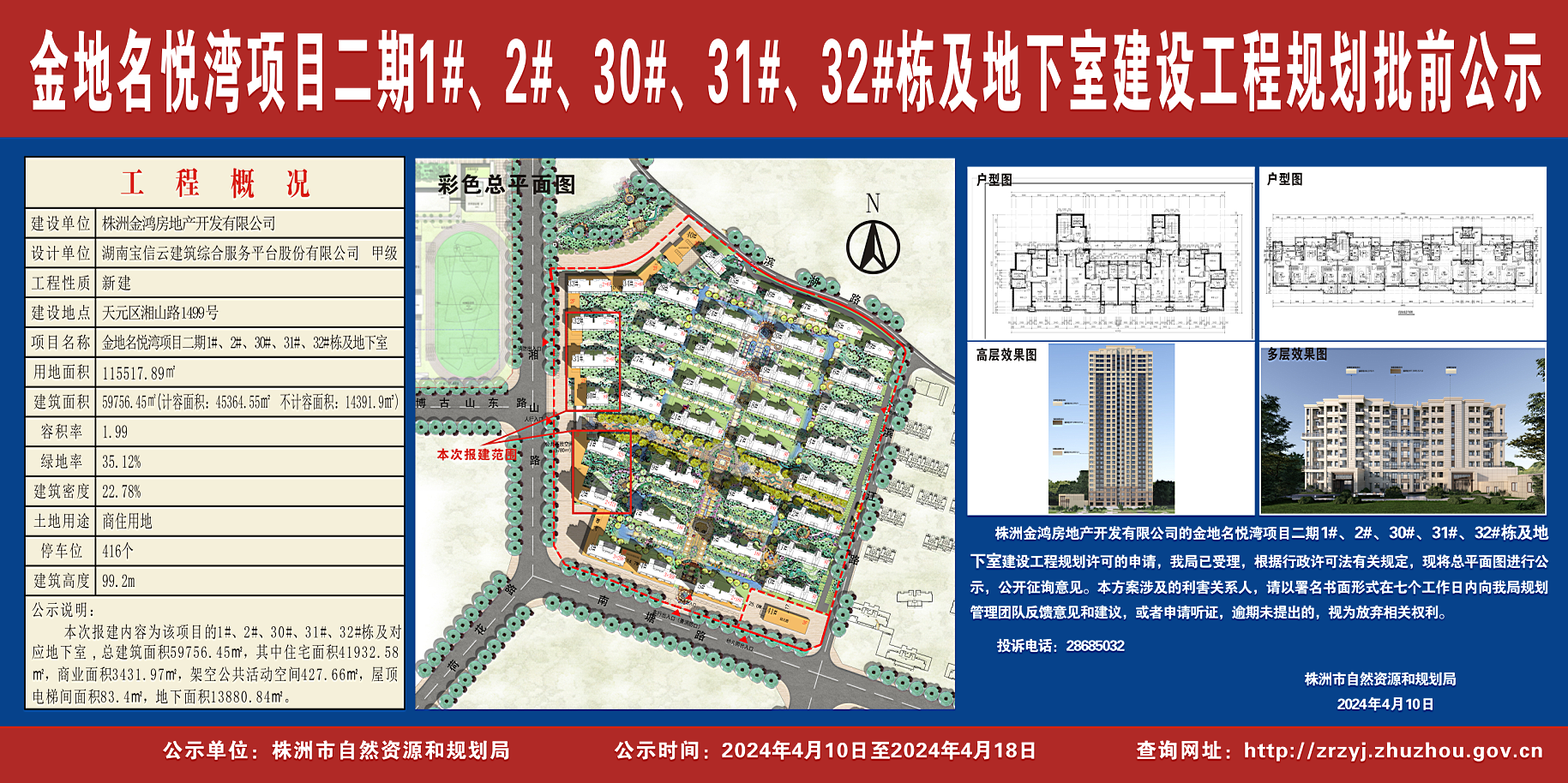 金地名悦湾项目二期1#、2#、30#、31#、32#栋及地下室建设工程规划批前公示