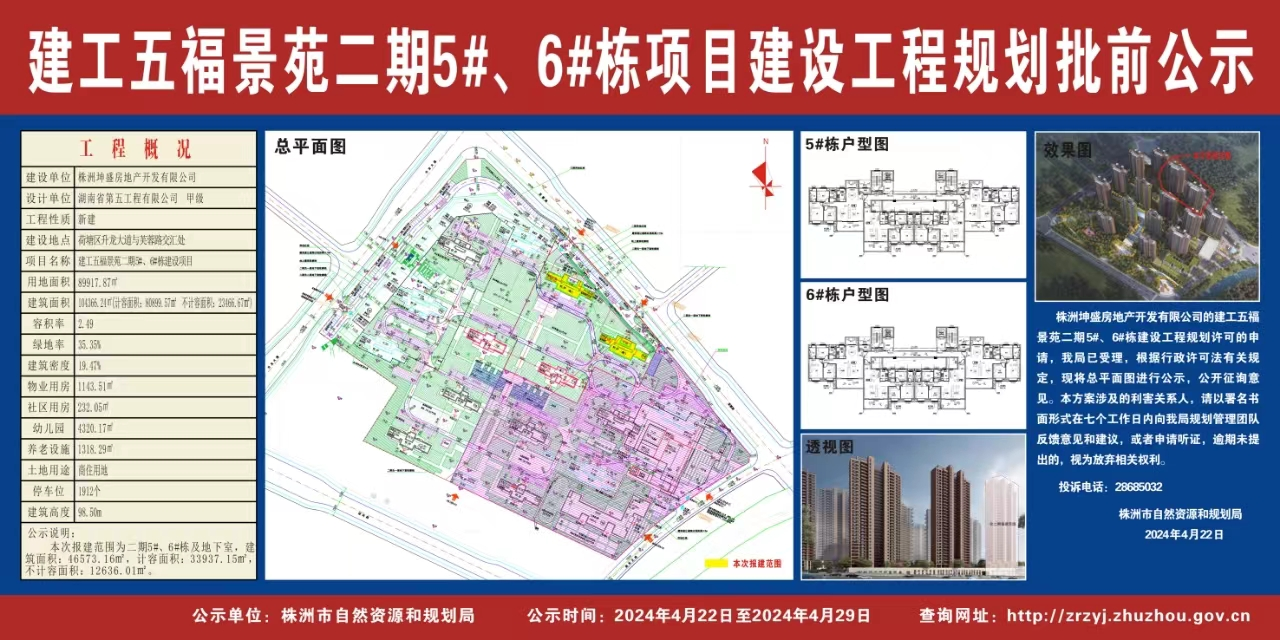 建工五福景苑二期5#、6#栋项目建设工程规划批前公示