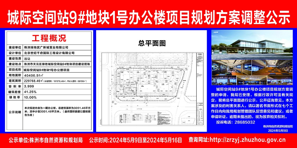 城际空间站9#地块1号办公楼项目规划方案调整公示