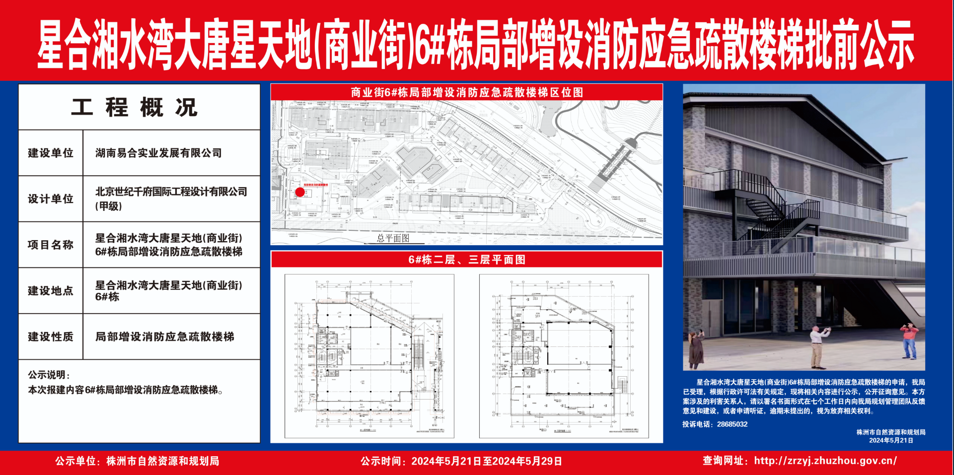 星合湘水湾大唐星天地(商业街)6#栋局部增设消防应急疏散楼梯批前公示
