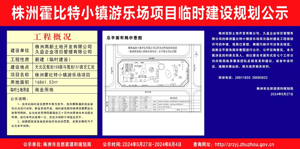 株洲霍比特小镇游乐场项目临时建设规划公示