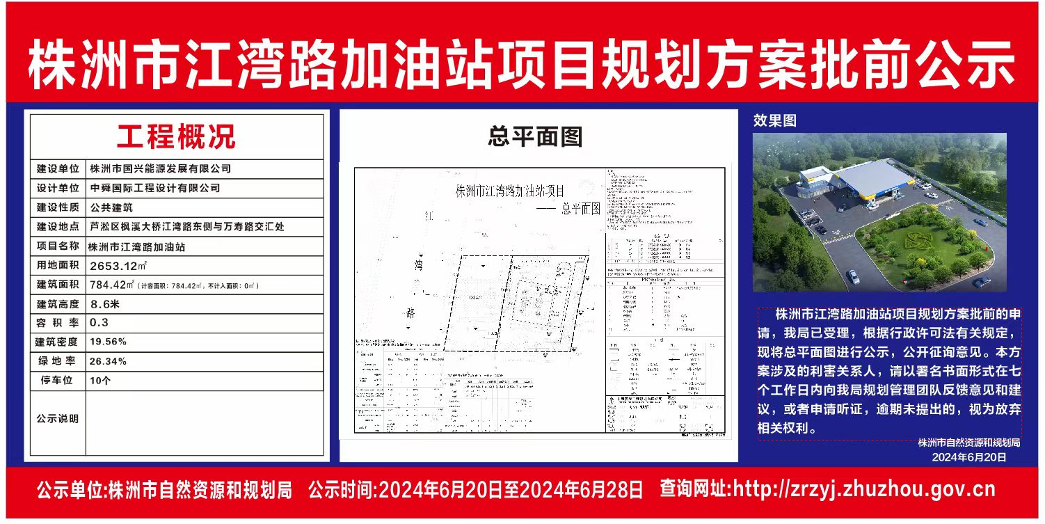 株洲市江湾路加油站项目规划方案批前公示