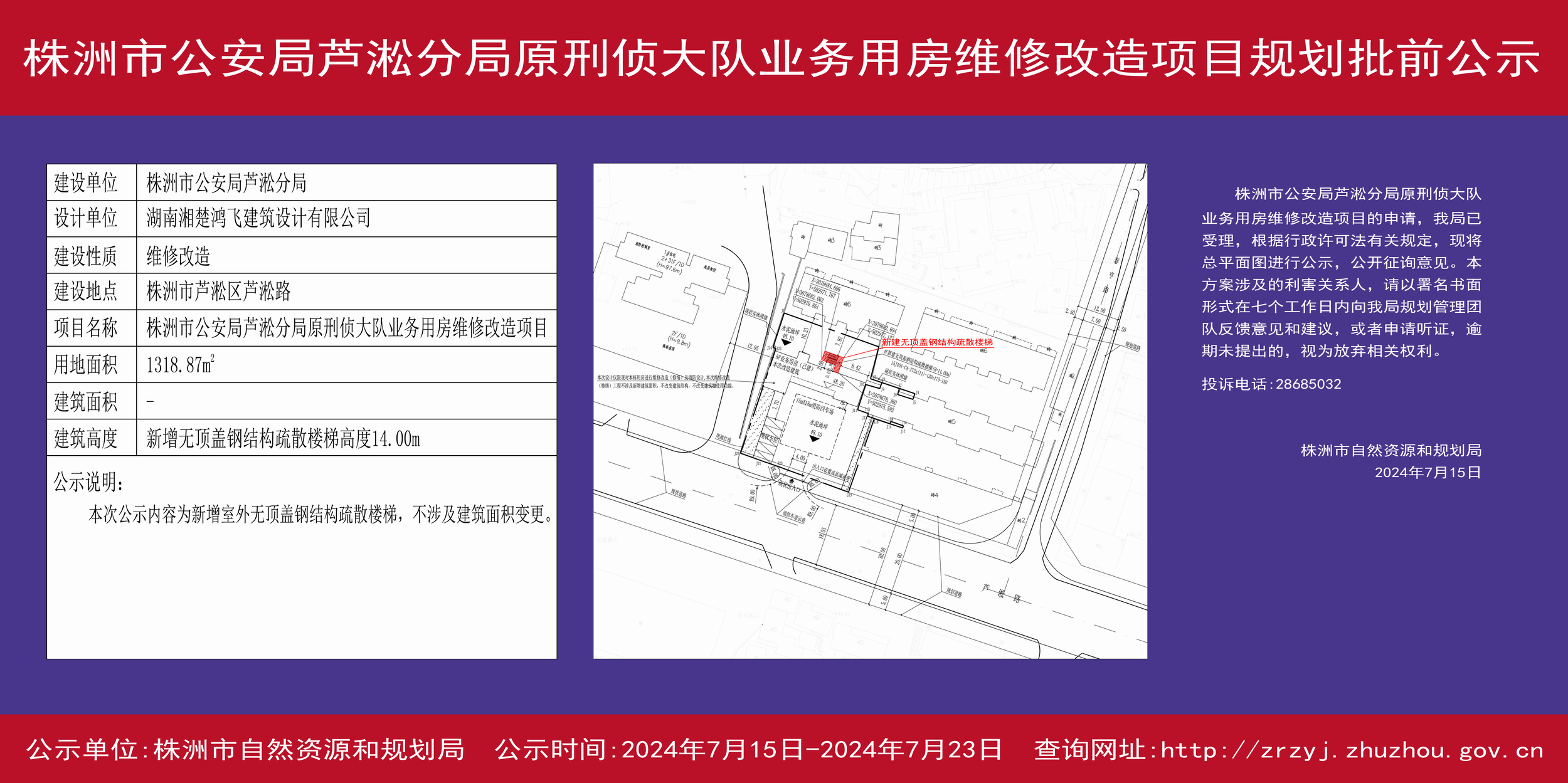 株洲市公安局芦淞分局原刑侦大队业务用房维修改造项目规划批前公示