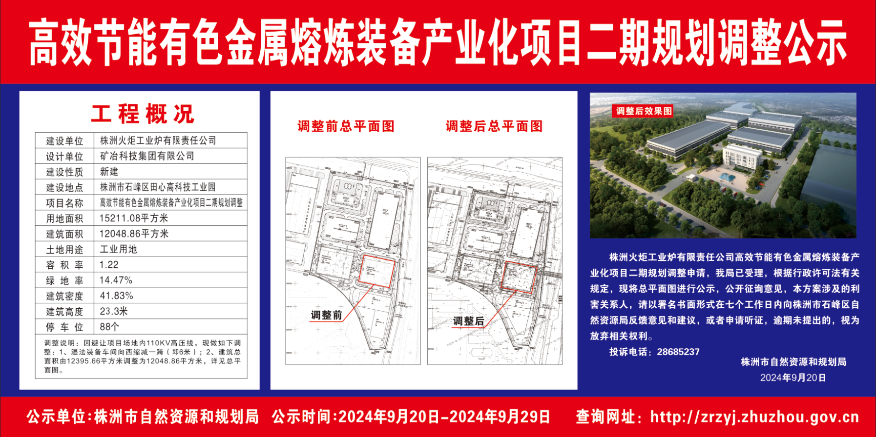 高效节能有色金属熔炼装备产业化项目二期规划调整公示