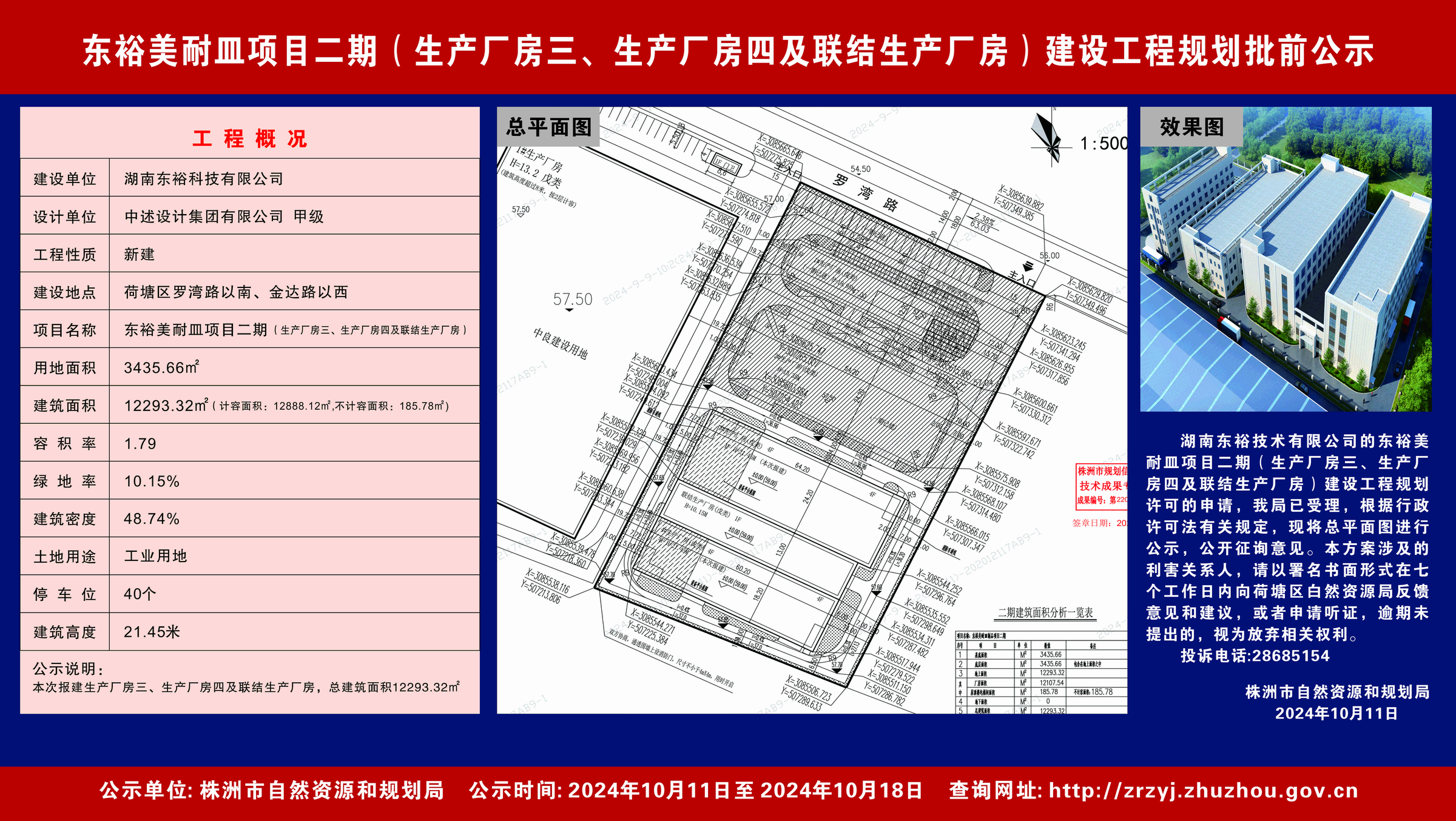 东裕美耐皿项目二期(生产厂房三、生产厂房四及联结生产厂房)建设工程规划批前公示