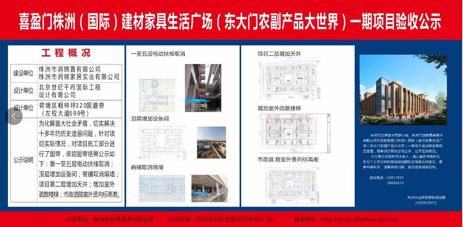 喜盈门株洲(国际)建材家具生活广场(东大门农副产品大世界)一期项目验收公示