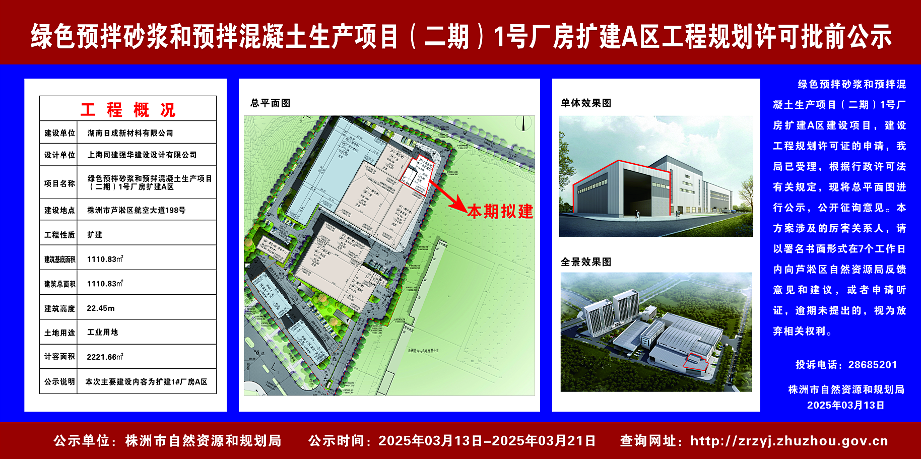 绿色预拌砂浆和预拌混凝土生产项目(二期)1号厂房扩建A区工程规划许可批前公示