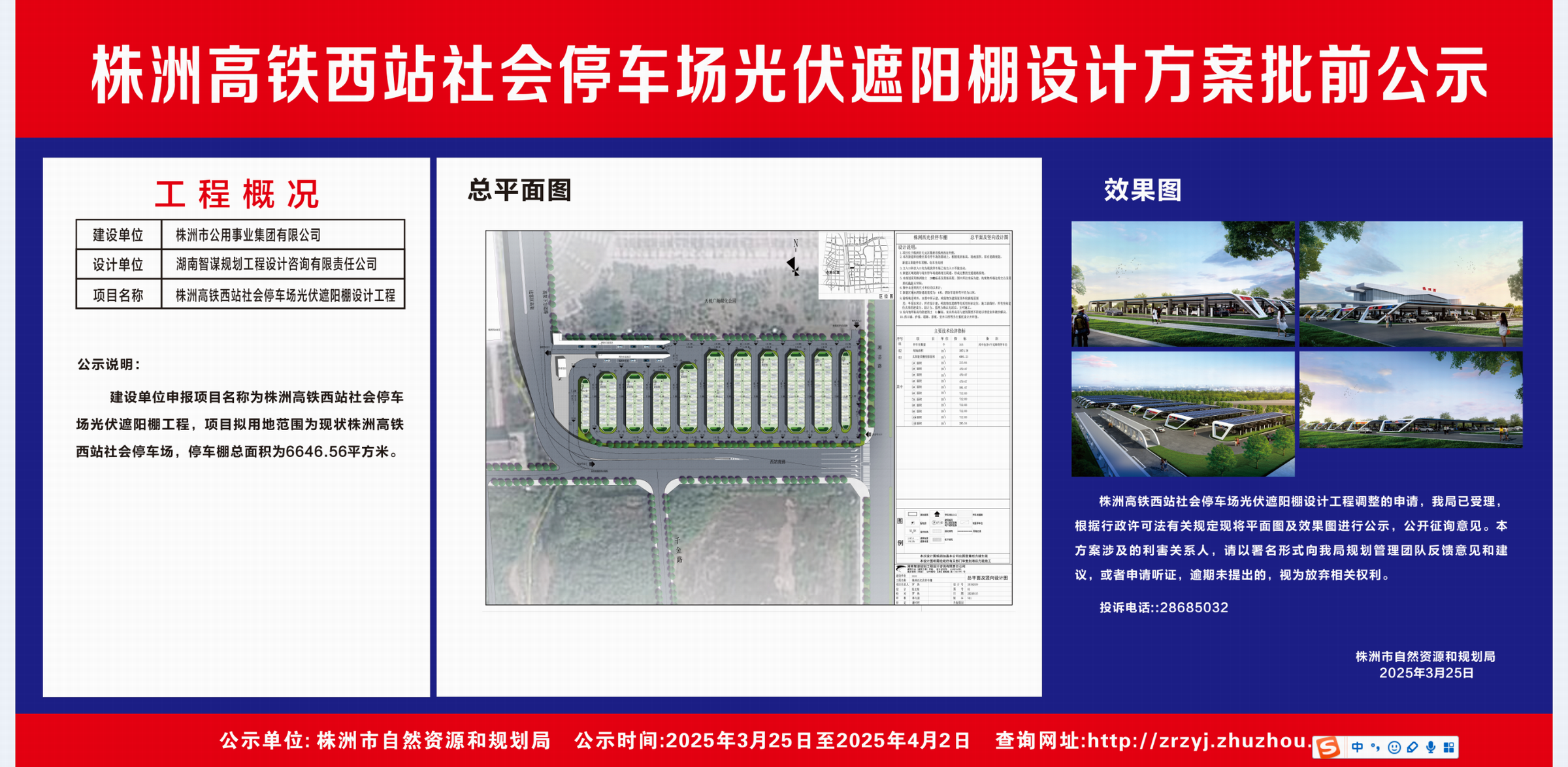 株洲高铁西站社会停车场光伏遮阳棚设计方案批前公示