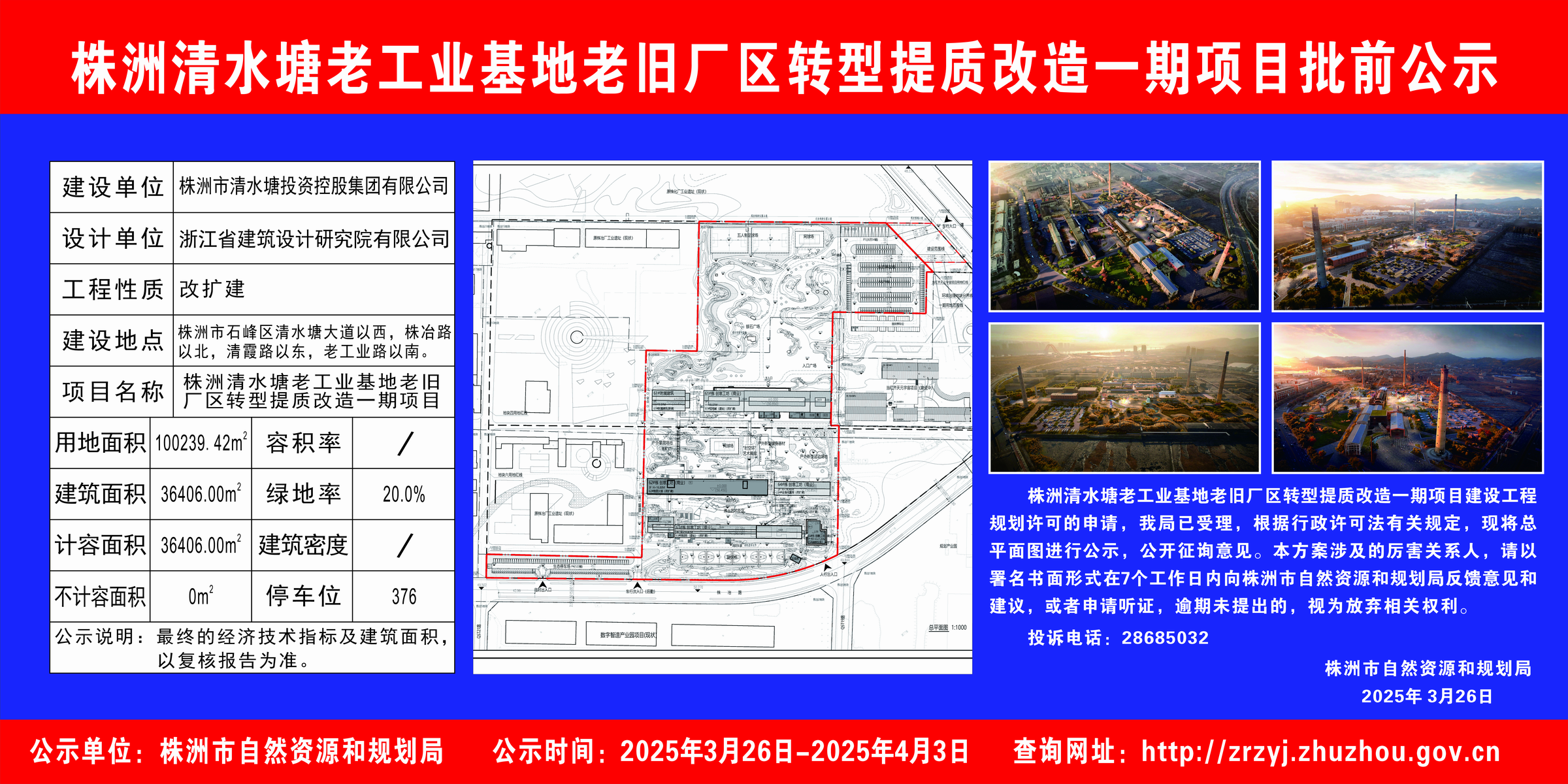 株洲清水塘老工业基地老旧厂区转型提质改造一期项目批前公示