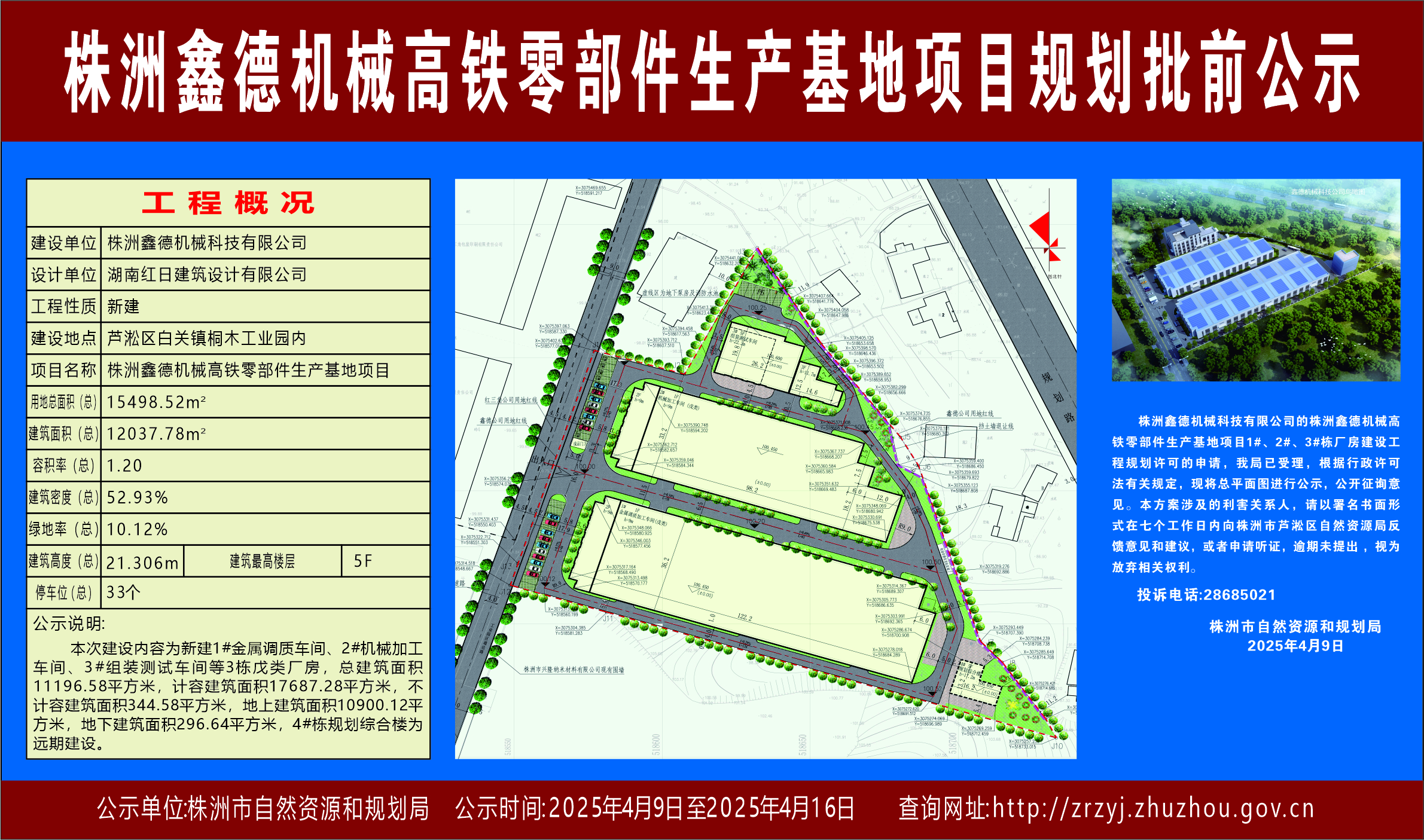 株洲鑫德机械高铁零部件生产基地项目规划批前公示