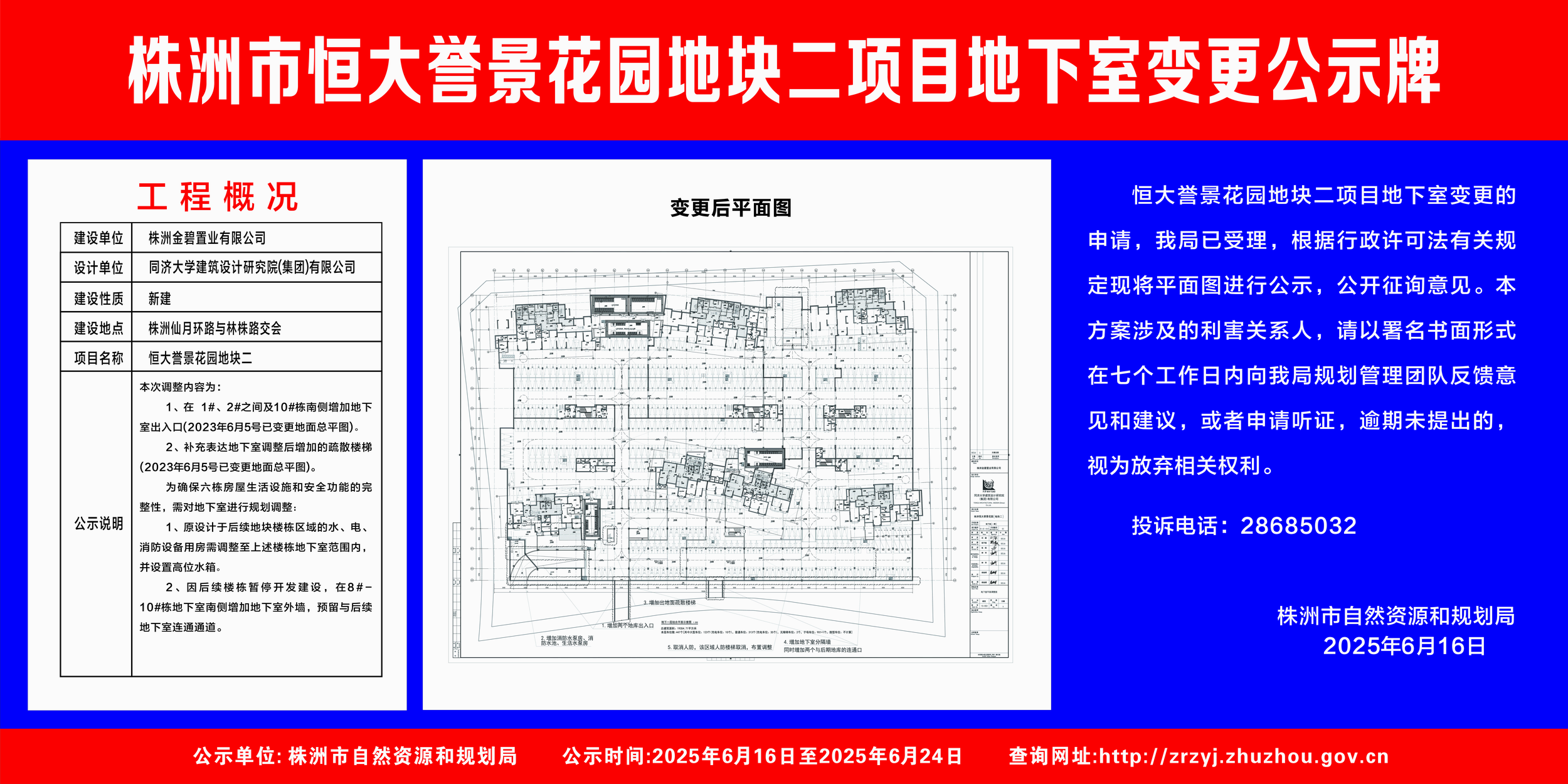 株洲市恒大誉景花园地块二项目地下室变更公示