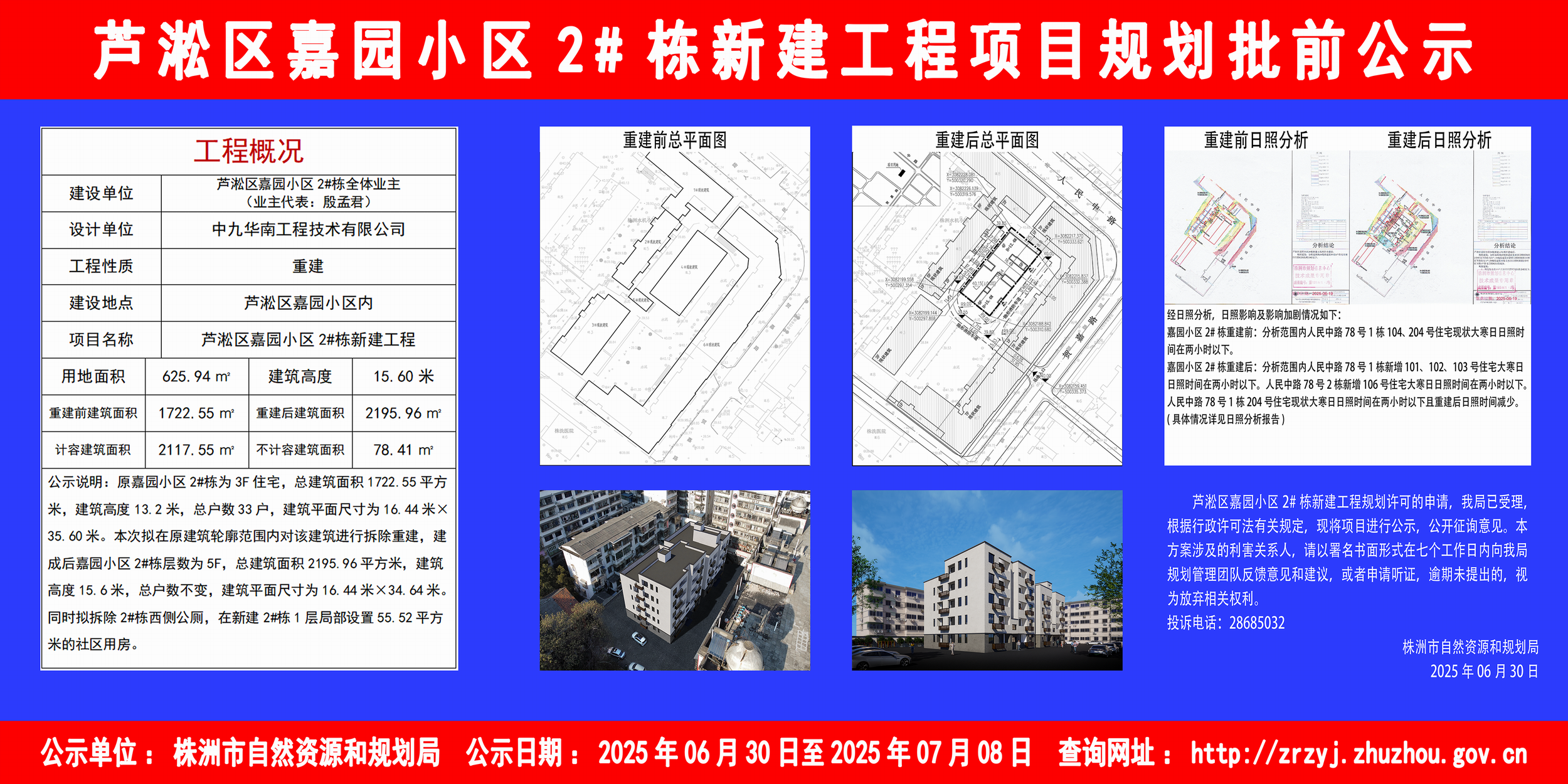 芦淞区嘉园小区 2# 栋新建工程项目规划批前公示