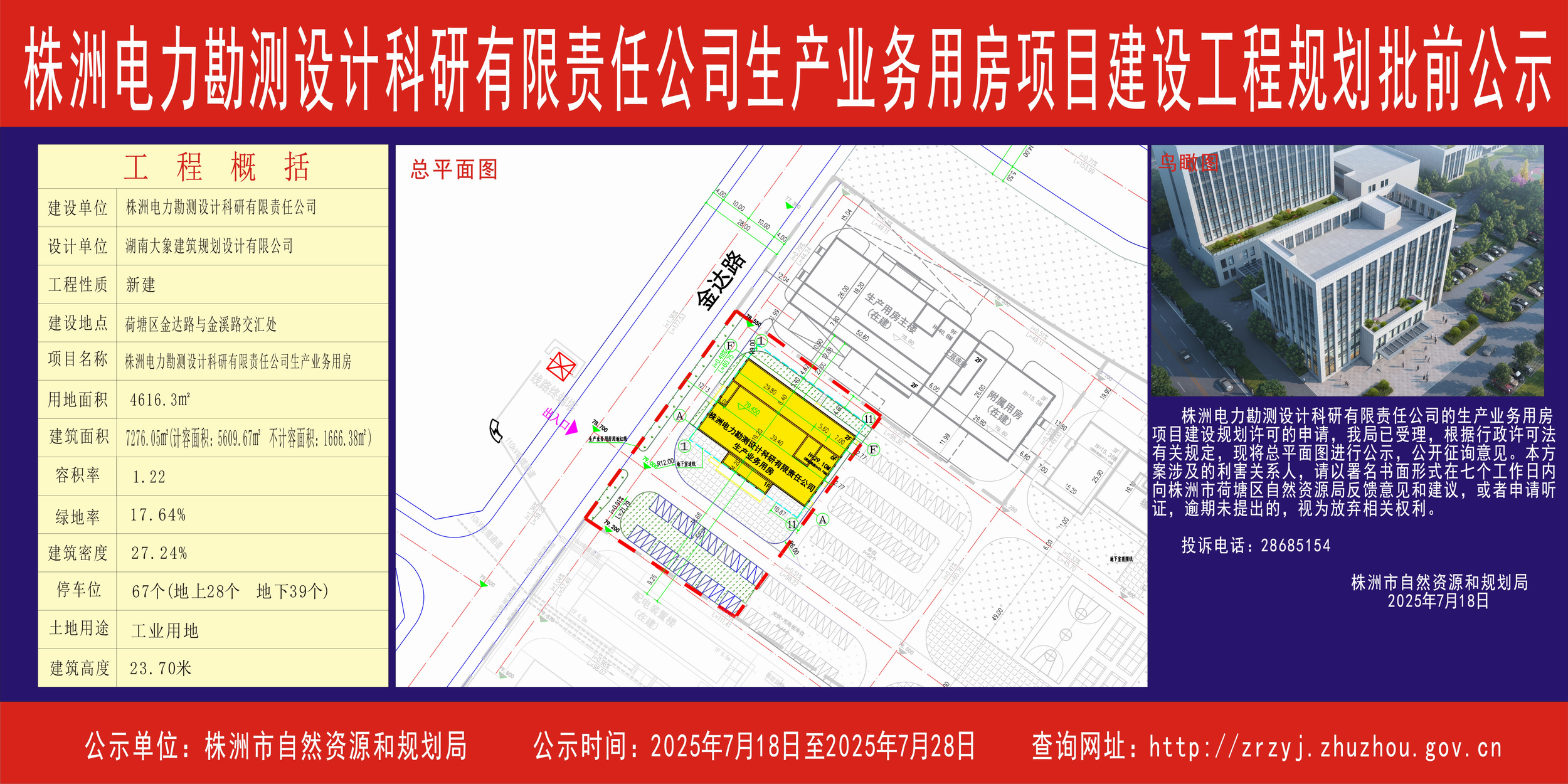 株洲电力勘测设计科研有限责任公司生产业务用房项目建设工程规划批前公示