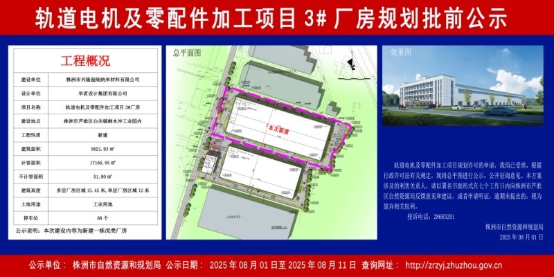 轨道电机及零配件加工项目3#厂房规划批前公示