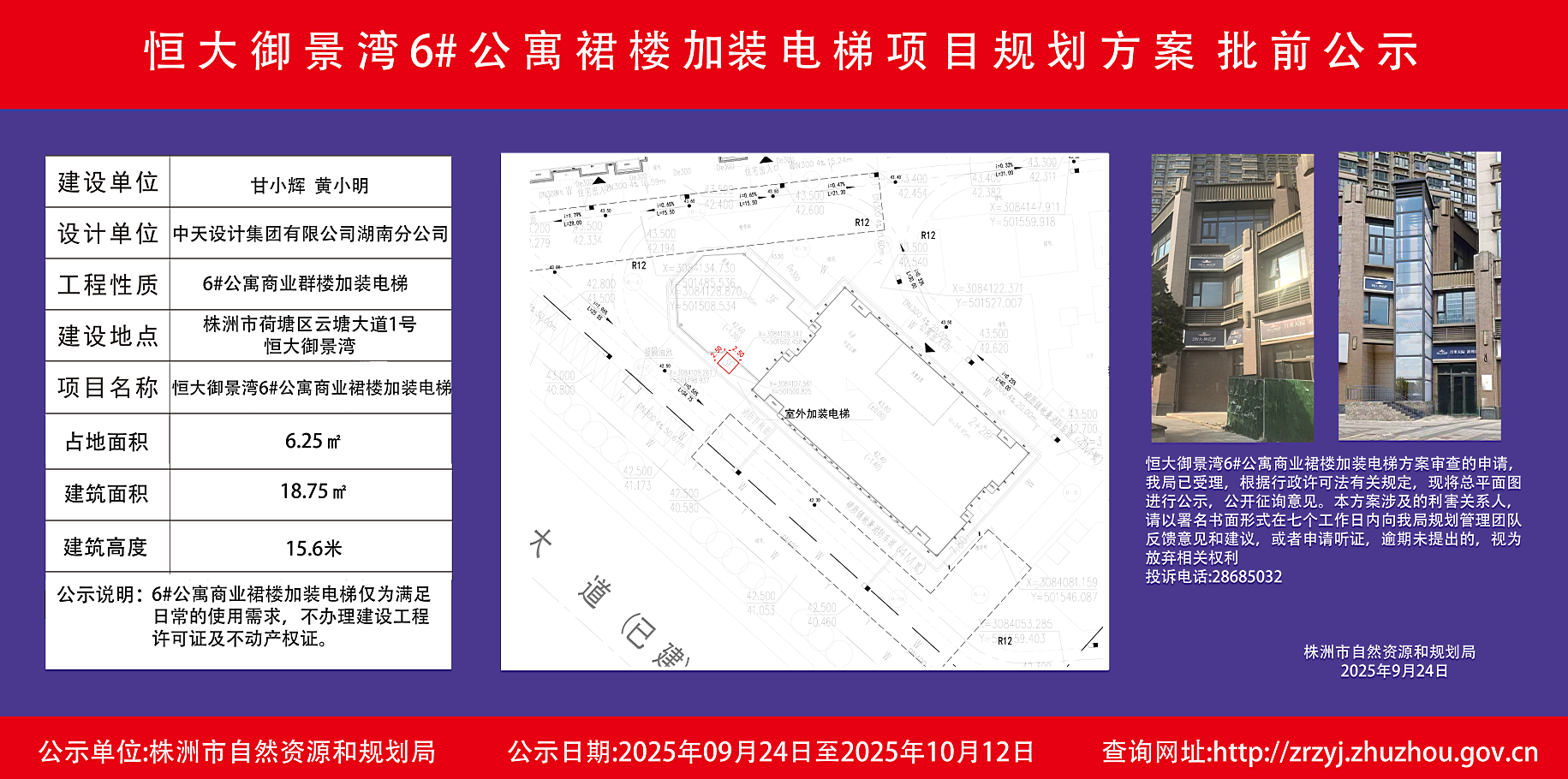 恒大御景湾6#公寓裙楼加装电梯项目规划方案 批前公示