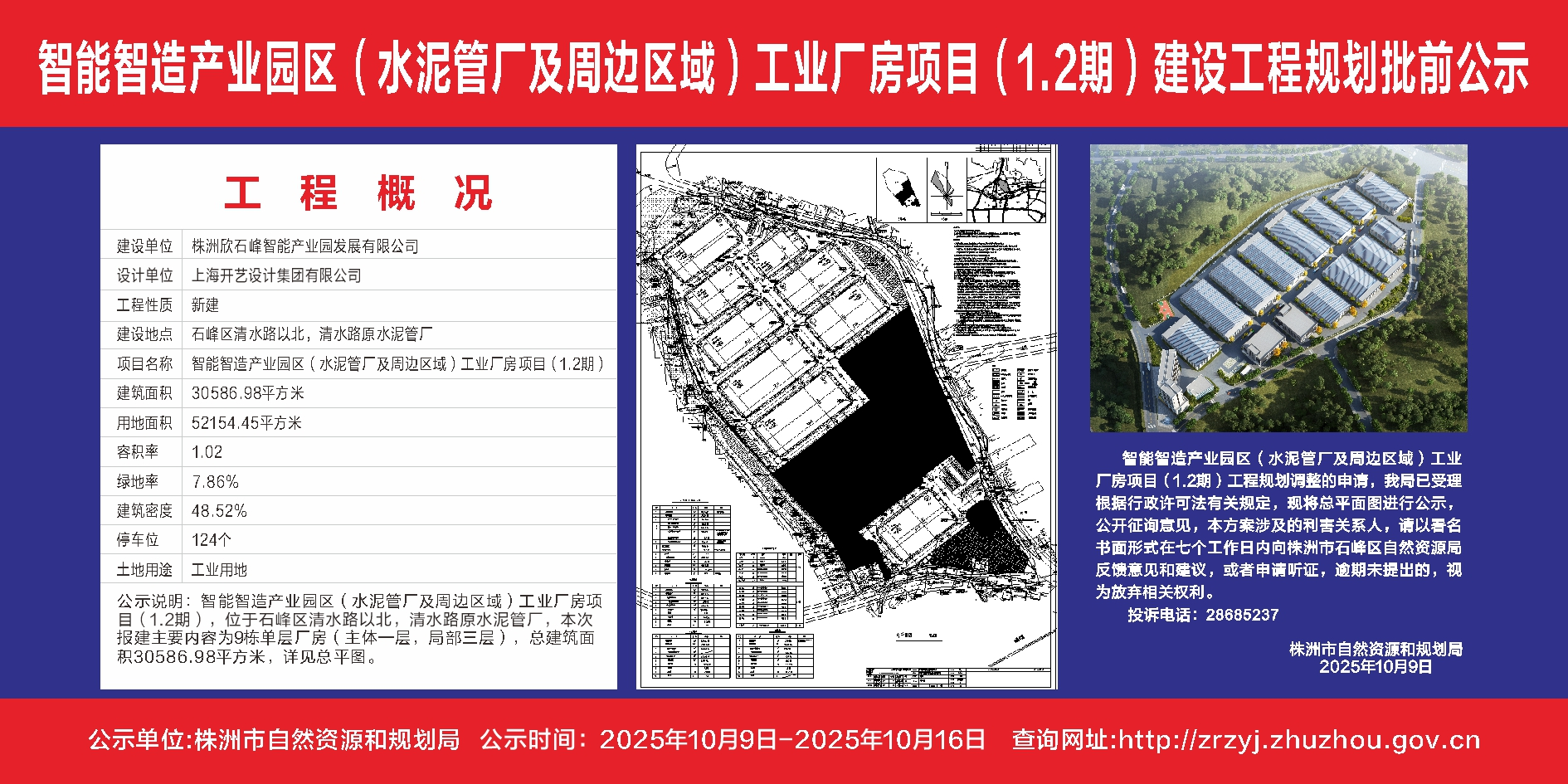 智能智造产业园区(水泥管厂及周边区域)工业厂房项目(1.2期)建设工程规划批前公示