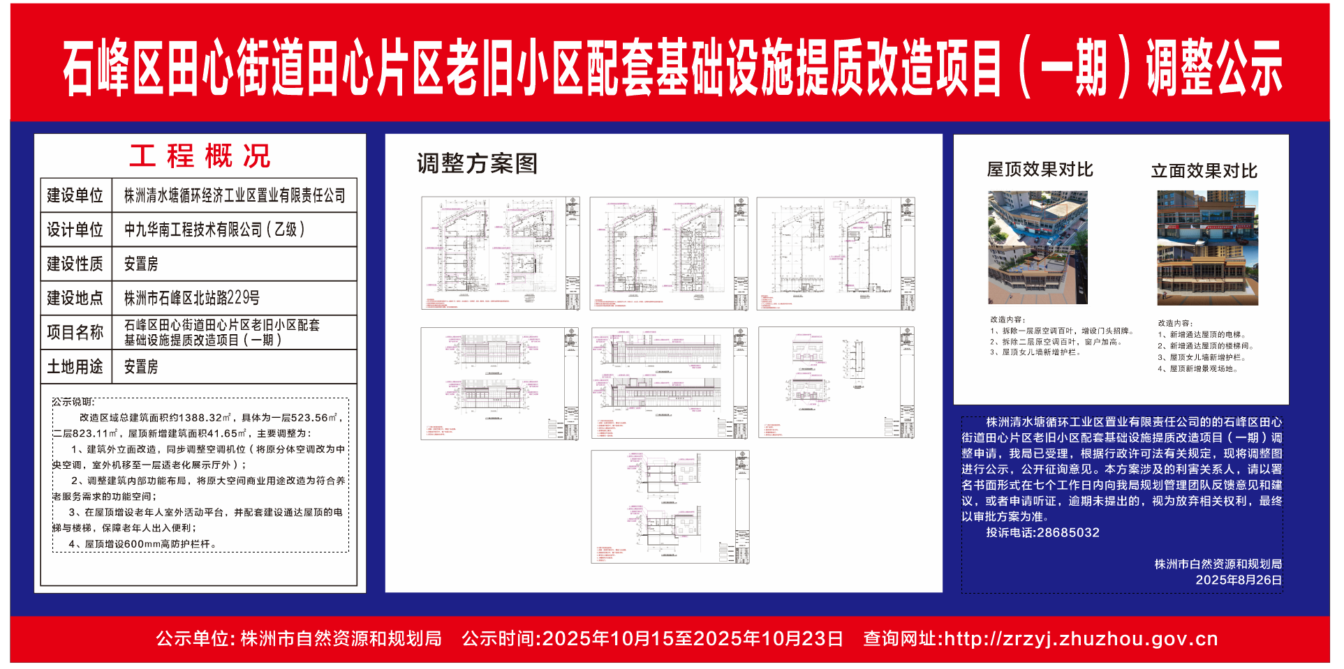 石峰区田心街道田心片区老旧小区配套基础设施提质改造项目(一期)调整公示