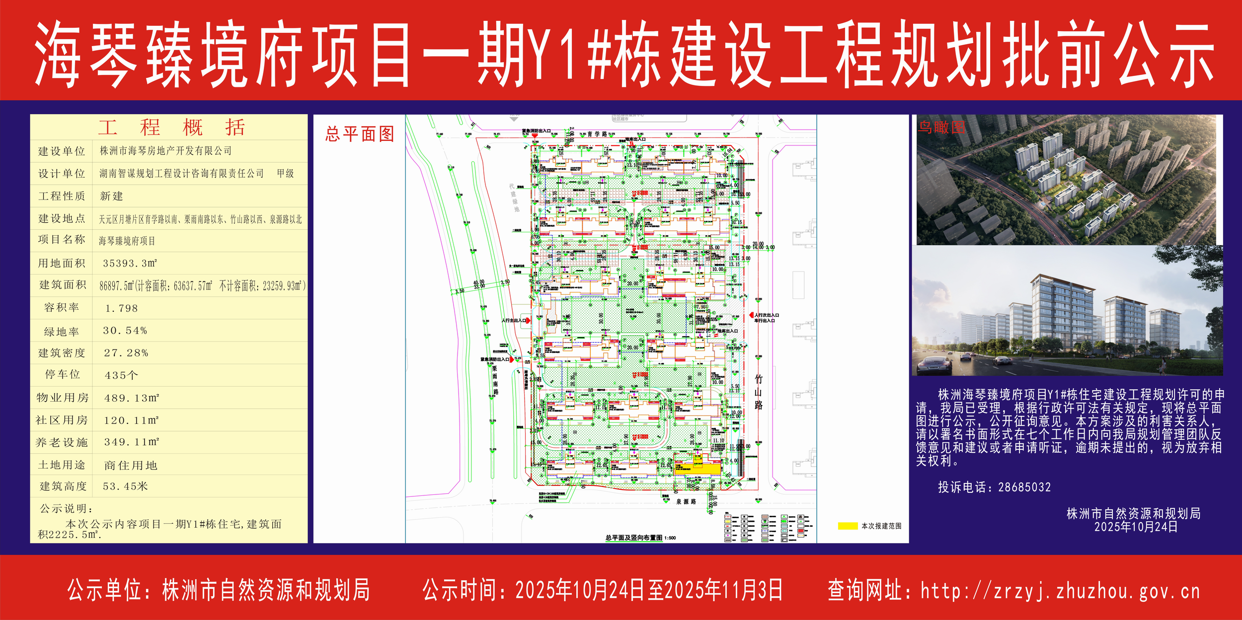 海琴臻境府项目一期Y1#栋建设工程规划批前公示