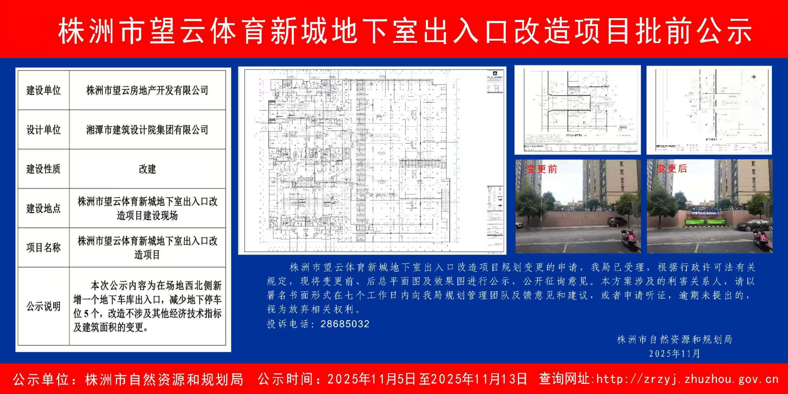 株洲市望云体育新城地下室出入口改造项目批前公示