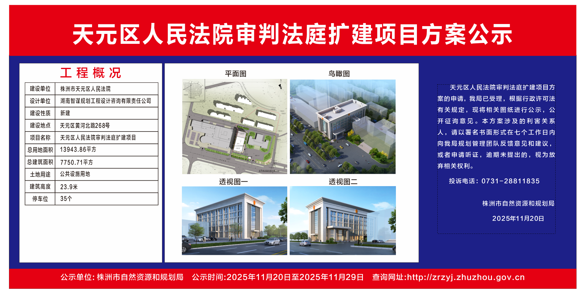 天元区人民法院审判法庭扩建项目方案公示